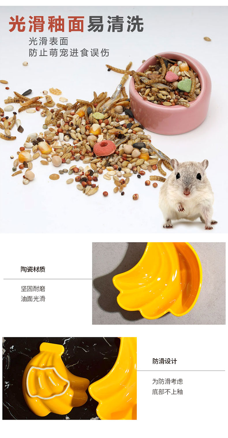 • 동결 건조 햄스터 음식 + 사과 핑크 세라믹 음식 그릇