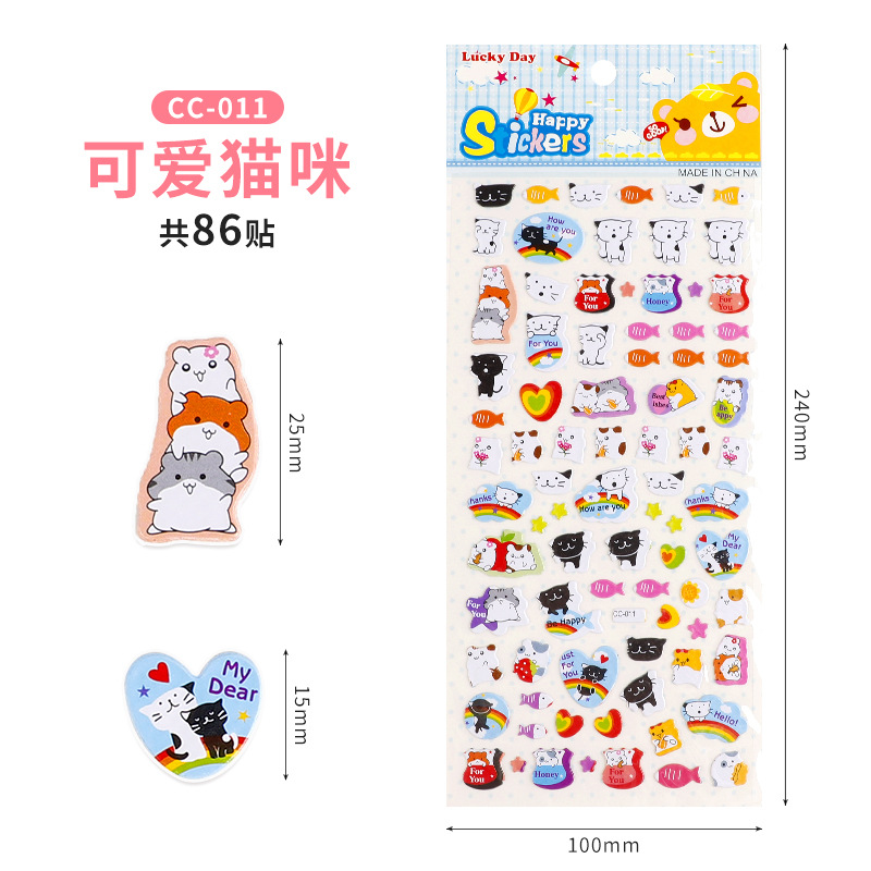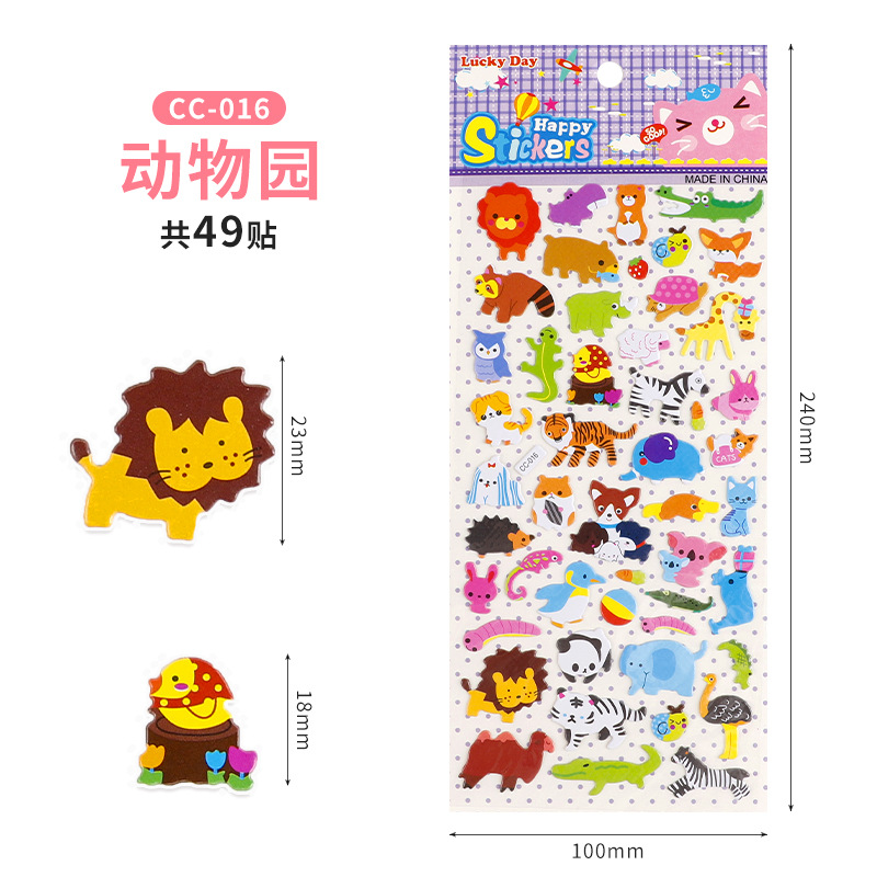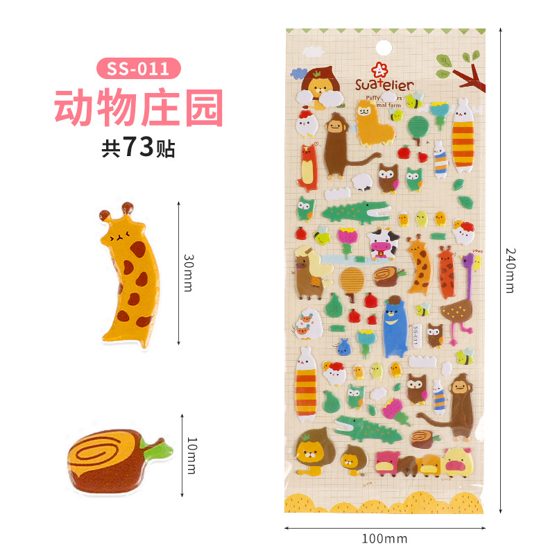 어린이 만화 버블 스티커 3D 입체 동물 일기 손 계정 스티커 유치원 어린이 보상 스티커 도매스토어 가기