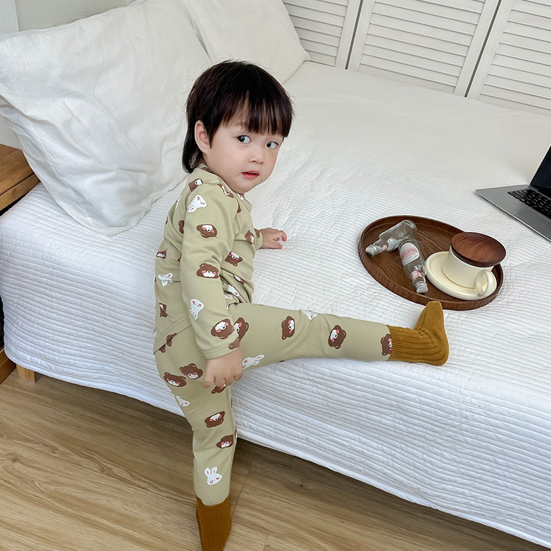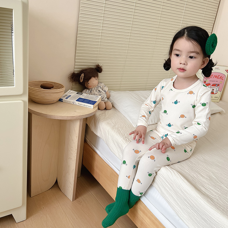 2025 아동용 얇은 면 무봉제 만화 캐릭터 속옷 세트 아기 슬림핏 가을옷 남아 여아 라이크라 가을바지