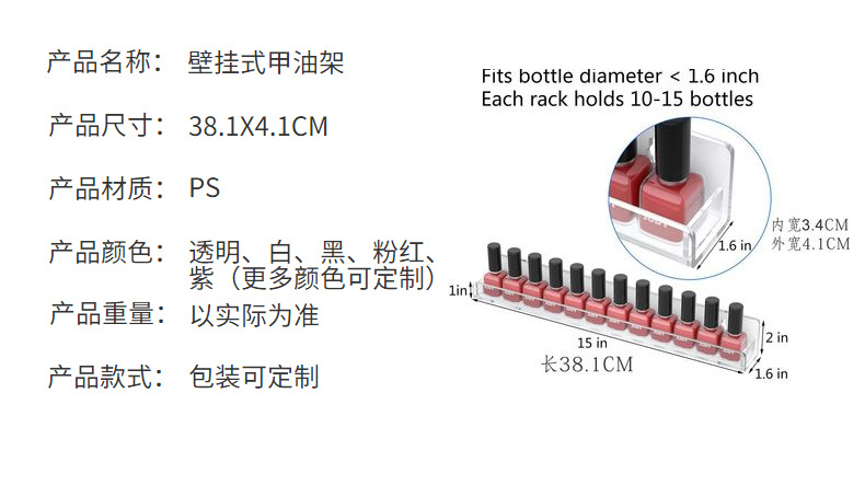 맞춤형 벽걸이 디스플레이 랙 매니큐어 투명 립스틱 베플 보관 디스플레이 선반 제조 업체 도매