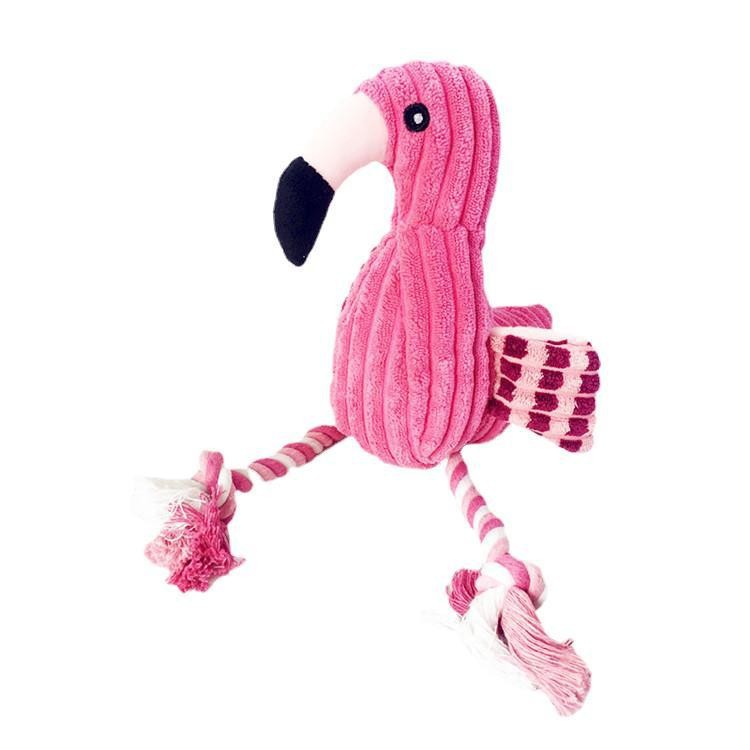 玩具内部置入发声气囊 按压会发出 biu biu 声引起爱宠的兴趣 带棉绳 磨牙棉绳结 火烈鸟的脚是红白相间棉绳结设计 耐玩耐咬