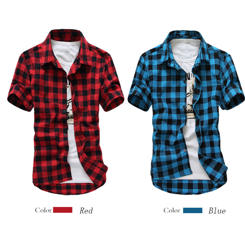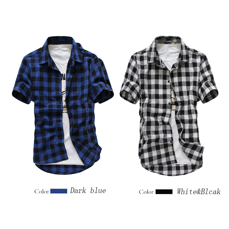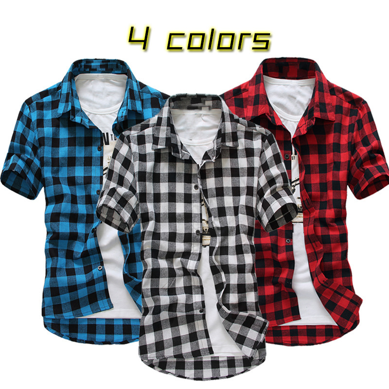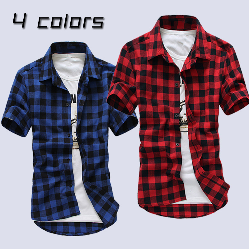 2024 트렌디 한 격자 무늬 셔츠 슬림 핏 반팔 셔츠 남성용 캐주얼 베이스 셔츠 10 대 CS04스토어 가기