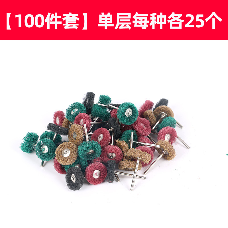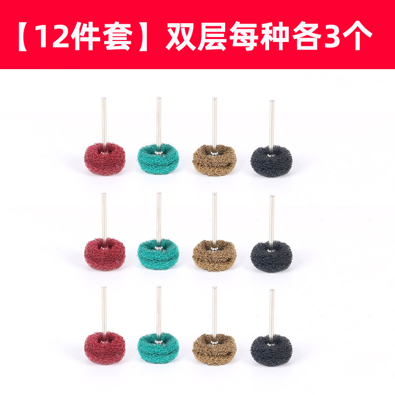 크로스 보더 핫 세일 3x25 이중층 수세미 연삭 헤드 미니 나일론 브러시 전기 연삭 섬유 드로잉 휠 연마 휠
