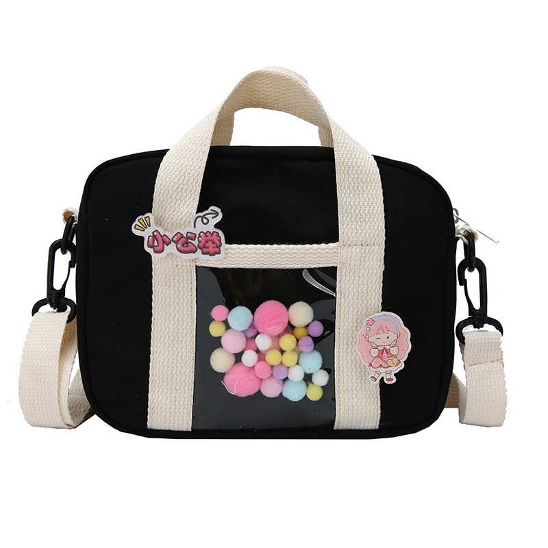 2021 여름 새로운 투명 가방 여자의 일본식 작은 신선한 귀여운 모피 공 작은 사각 가방 학생 어깨 크로스 바디 가방스토어 가기
