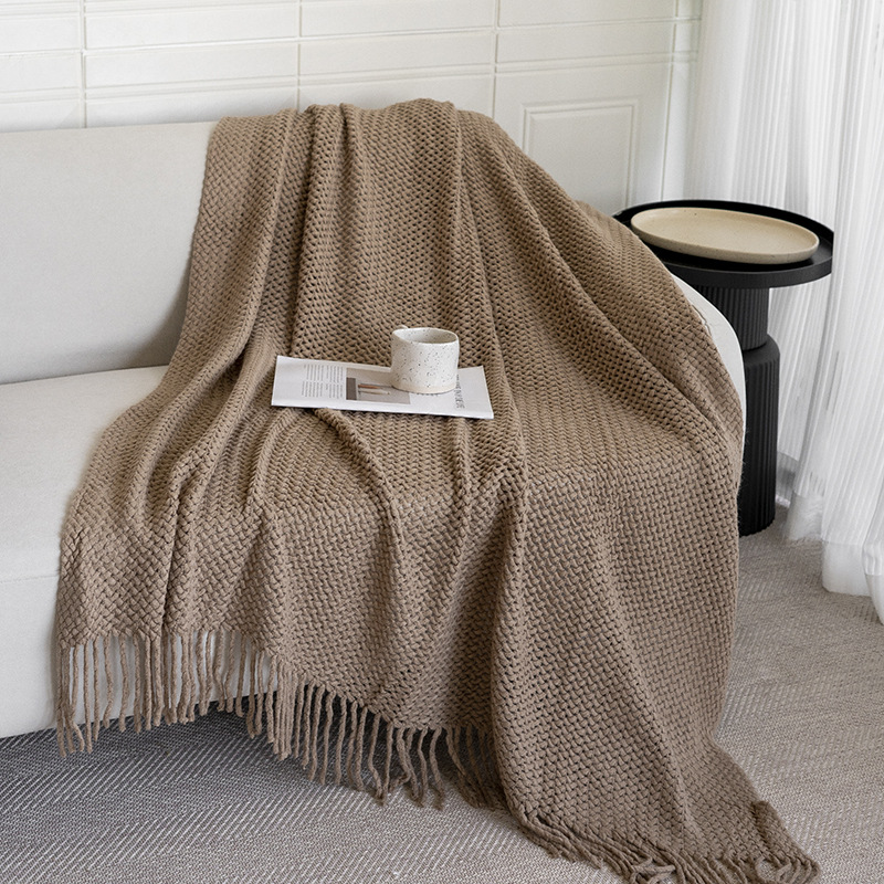 간단한 중공 격자 니트 담요 봄과 여름 사무실 소파 낮잠 울 담요 홈스테이 침대 끝 담요스토어 가기