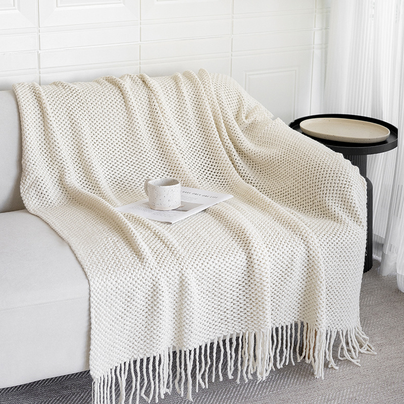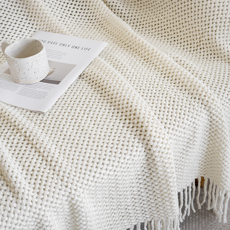 간단한 중공 격자 니트 담요 봄과 여름 사무실 소파 낮잠 울 담요 홈스테이 침대 끝 담요
