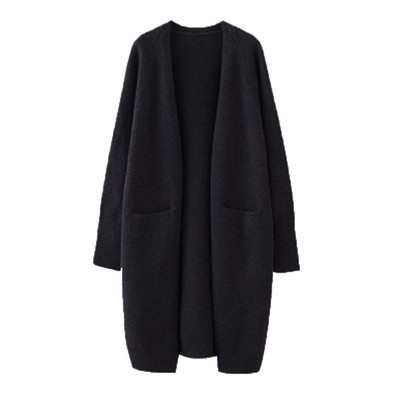여성용 중간 길이 스웨터 재킷 2025 가을 겨울 신상 한국 시크한 레이지 스타일 솔리드 컬러 브이넥 니트 여성 가디건