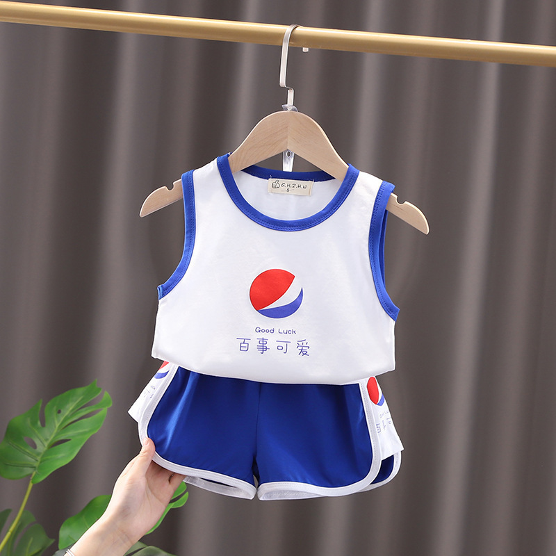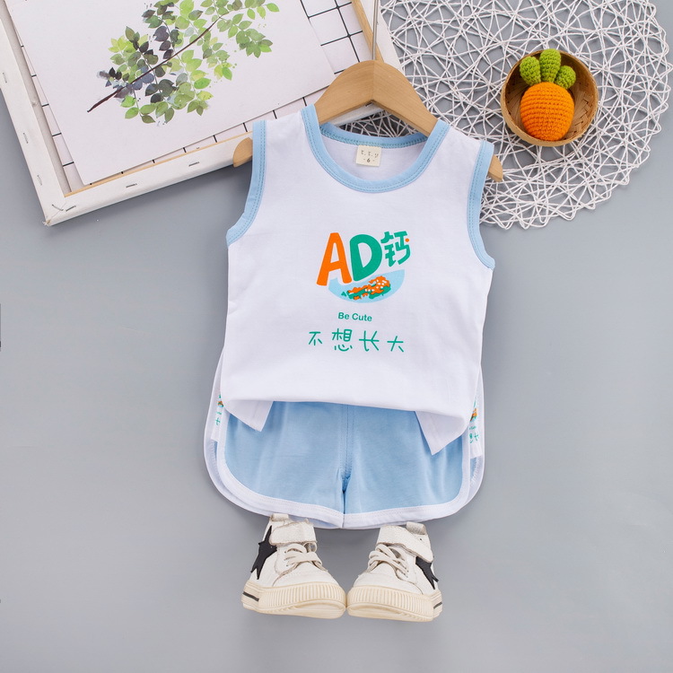 어린이 조끼 세트 아동 의류 새 소년 여름 옷 유아 면 캐주얼 민소매 반바지 투피스 세트스토어 가기