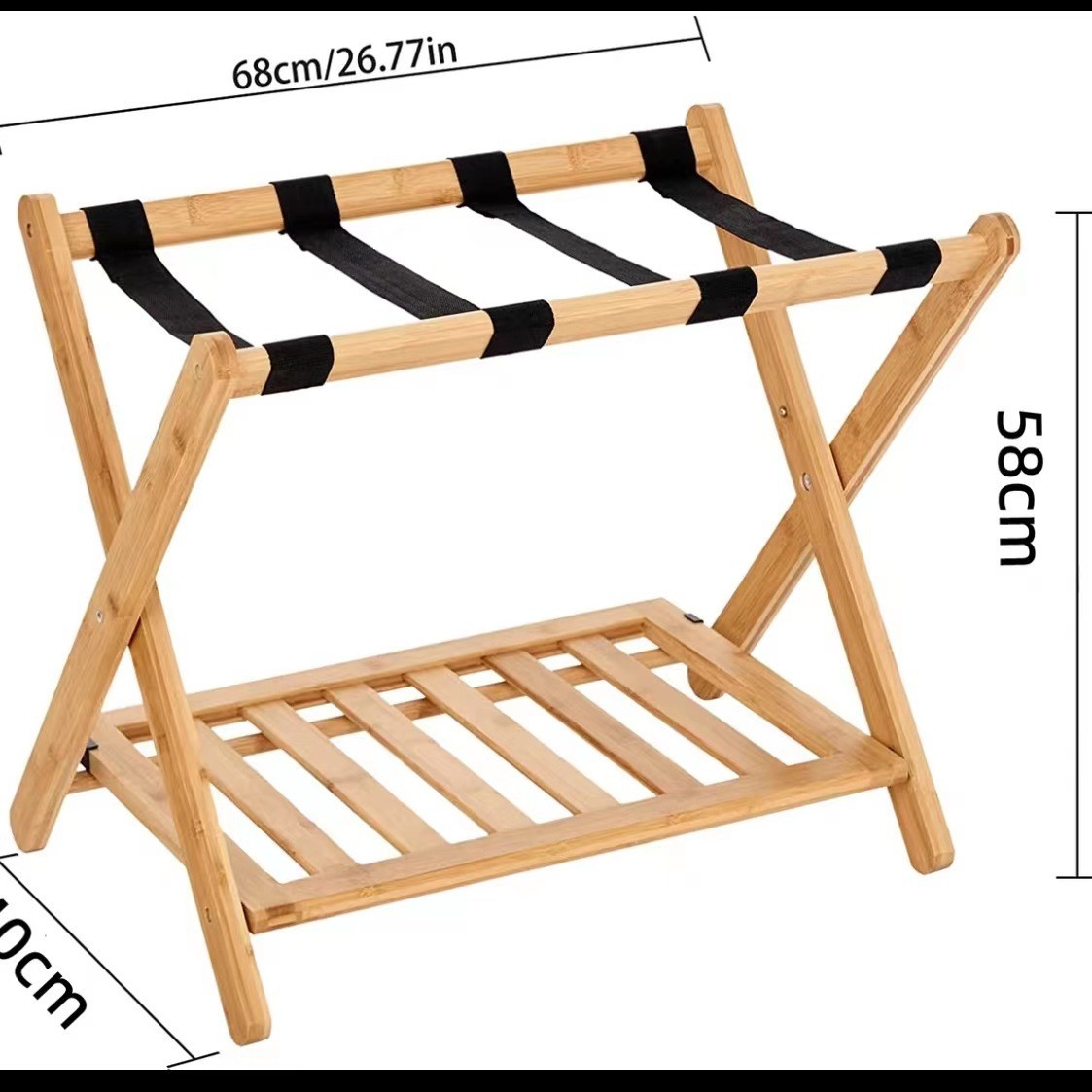 호텔 블랙 러기지 랙 가정용 대나무 접이식 침실 스토리지 랙 수출 더블 레이어 러기지 랙