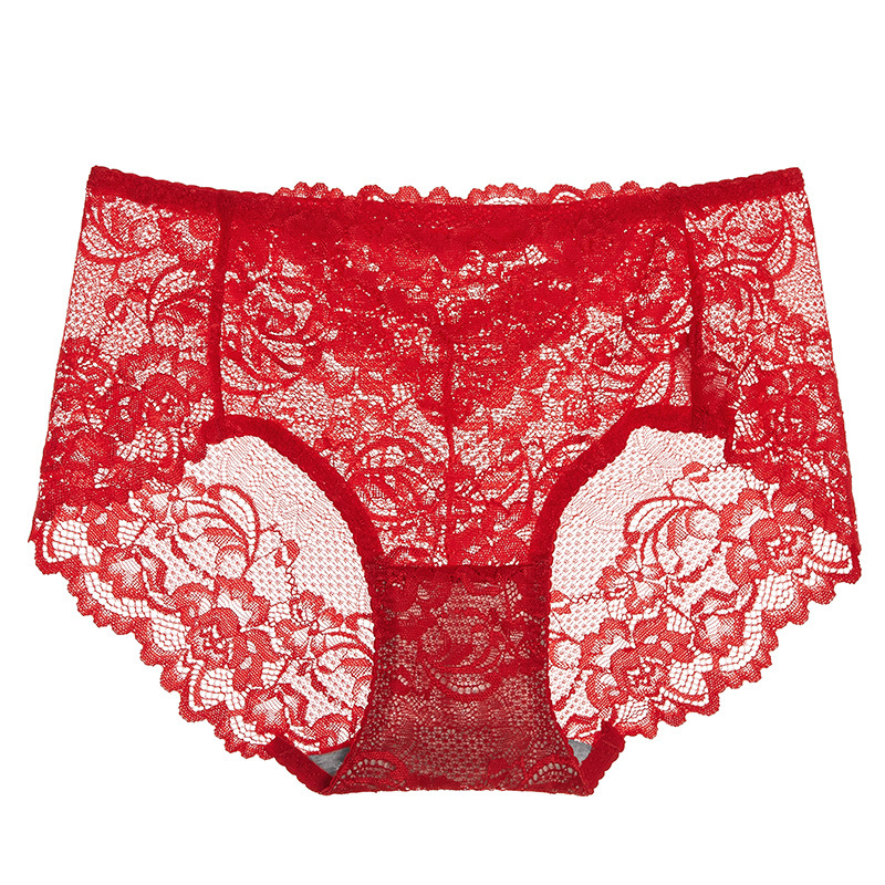 새로운 섹시한 속옷 여성 레이스 중반 허리 중공 엉덩이 리프팅 편안한 팬티 대형 순수 코튼 가랑이 여성 속옷