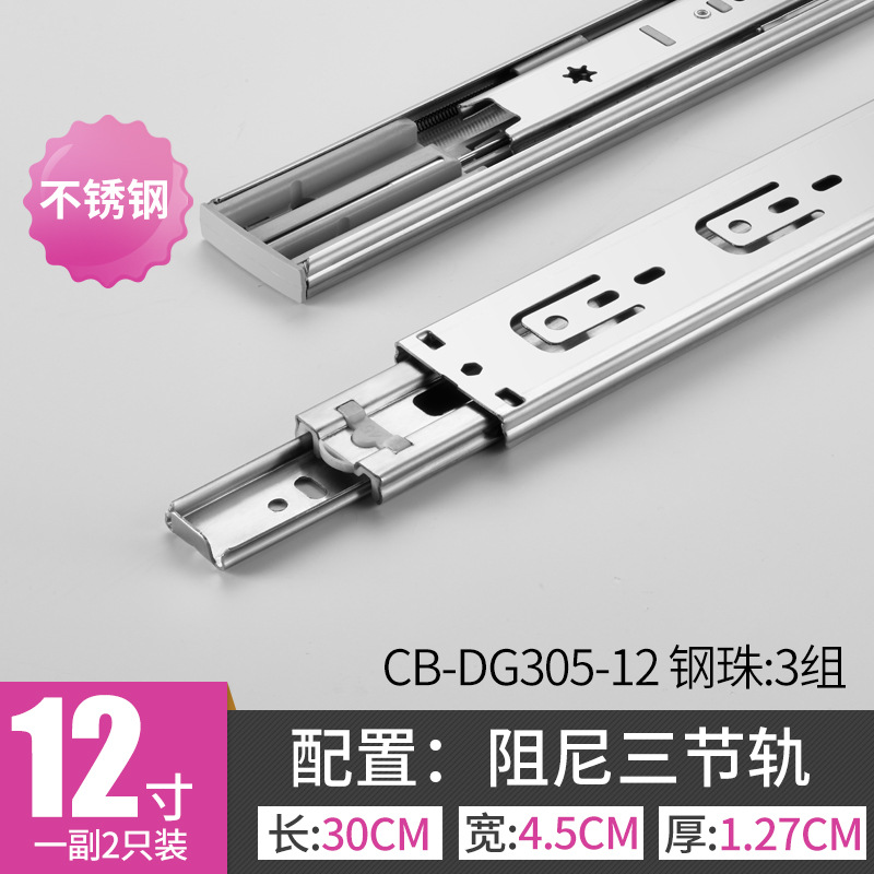 • [댐핑이있는 스테인레스 스틸] 12 인치 = 30cm 3 섹션 레일