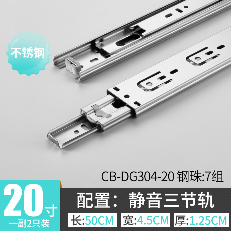 • [스테인레스 스틸] 20 인치 = 50cm 3 섹션 레일