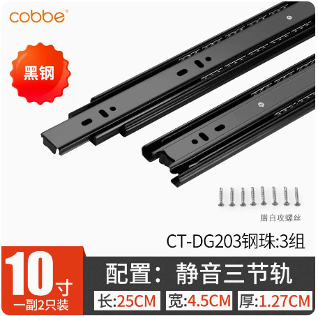• [블랙 스틸] 10 인치 = 25cm 3 섹션 레일