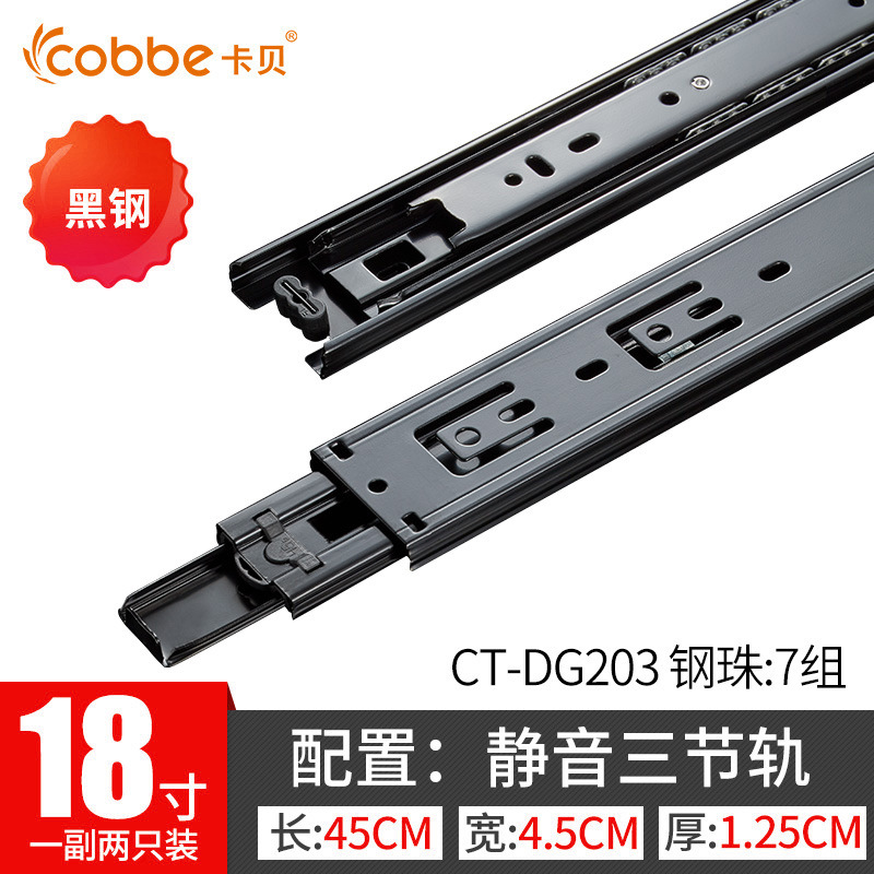 • [블랙 스틸] 18 인치 = 45cm 3 섹션 레일