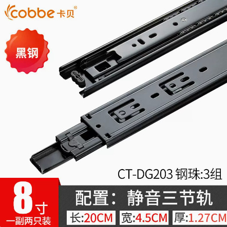 • [블랙 스틸] 8 인치 = 20cm 3 섹션 레일