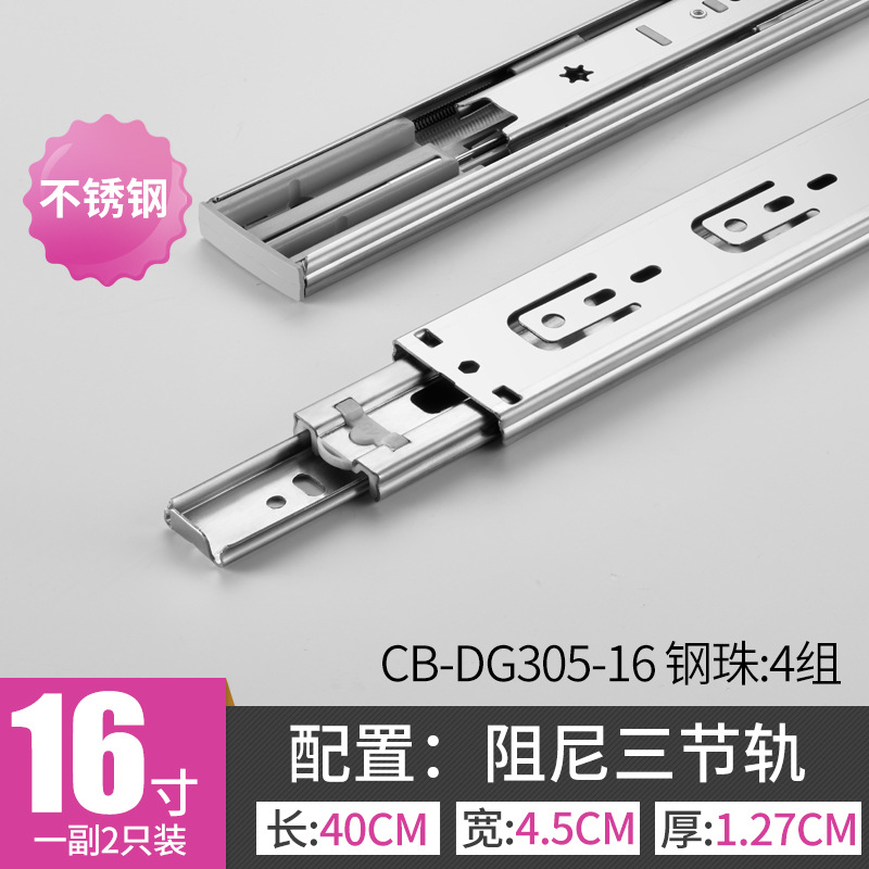 • [감쇠가있는 스테인레스 스틸] 16 인치 = 40cm 3 섹션 레일