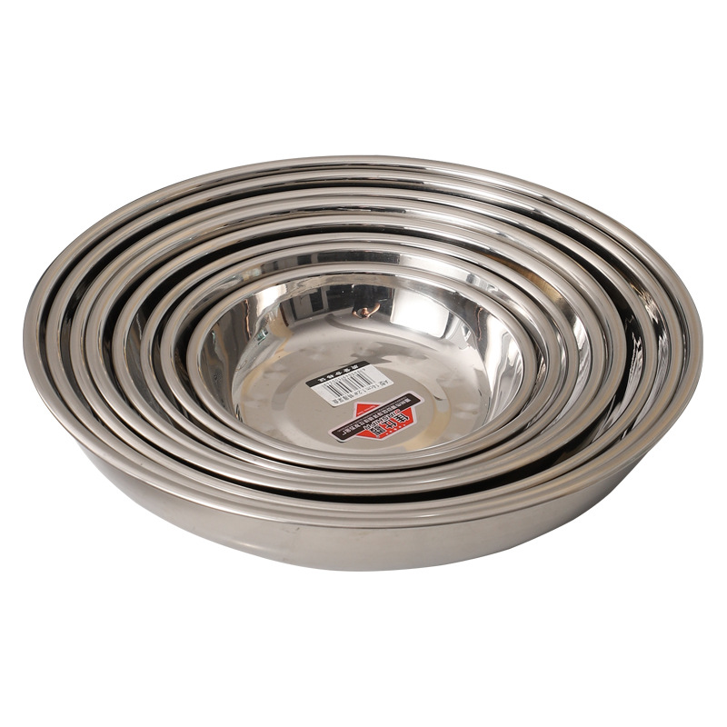 도매 식품 등급 스테인리스 원형 접시 두껍고 깊은 과일 접시 가정용 식당 다용도 접시 트레이