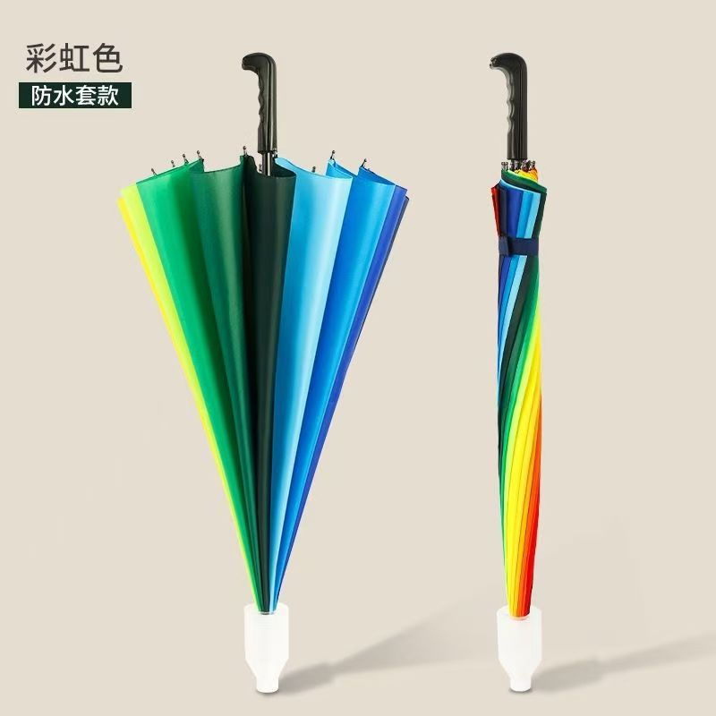 16 뼈 긴 손잡이 무지개 우산 광고 프로모션 우산 스트레이트 골프 우산 인쇄 가능한 로고 야외 방수 케이스 써니 우산스토어 가기