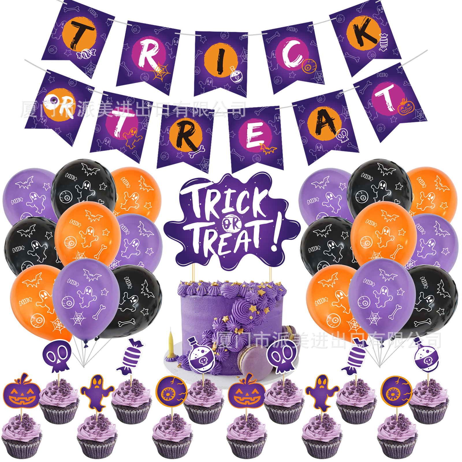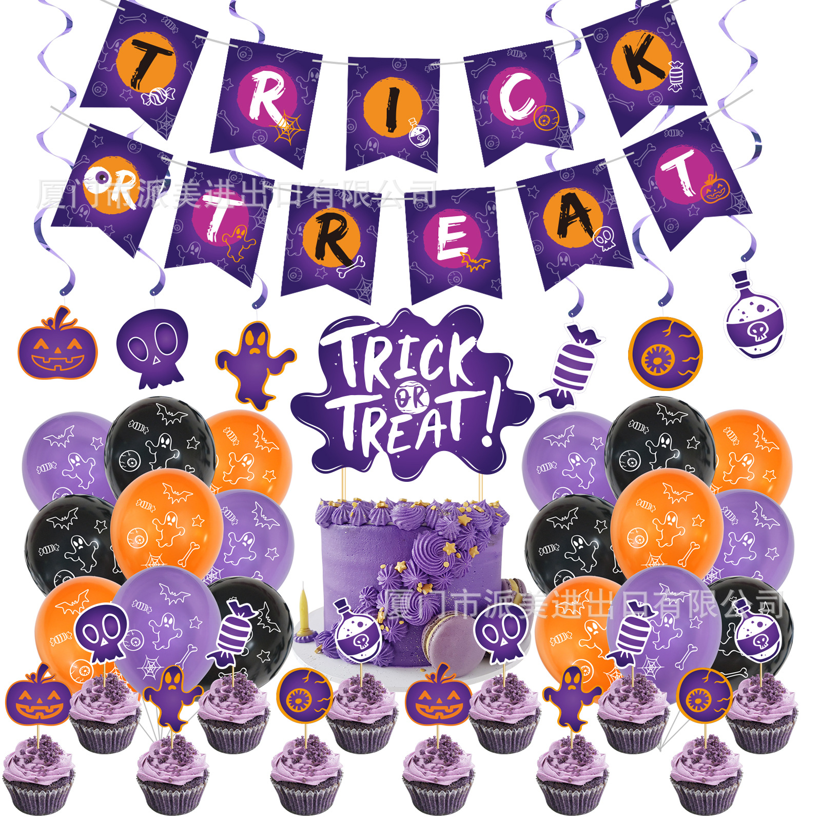 할로윈 테마 파티 장식 할로윈 편지 깃발 케이크 깃발 라텍스 풍선 나선 매력