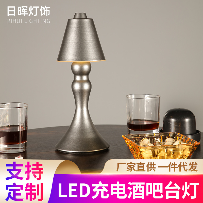 Led 충전 바 라이트 데스크 램프 침실 침대 옆 밤 라이트 테이블 램프 분위기 램프 레트로 클리어 바 테이블 램프