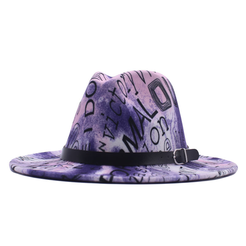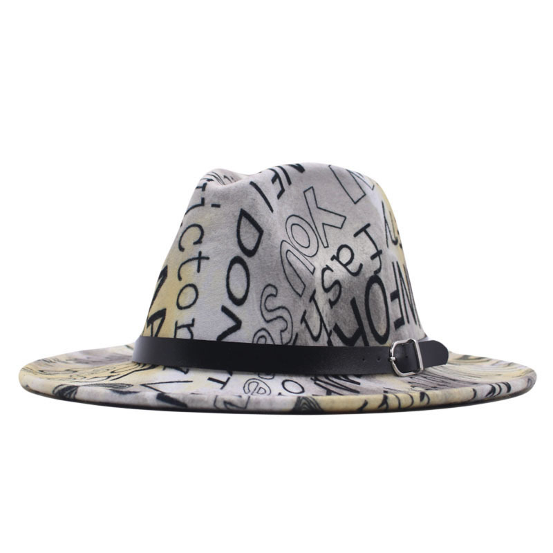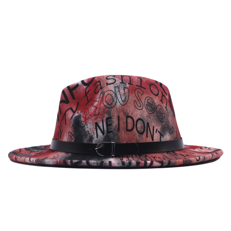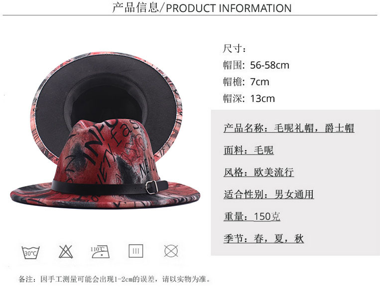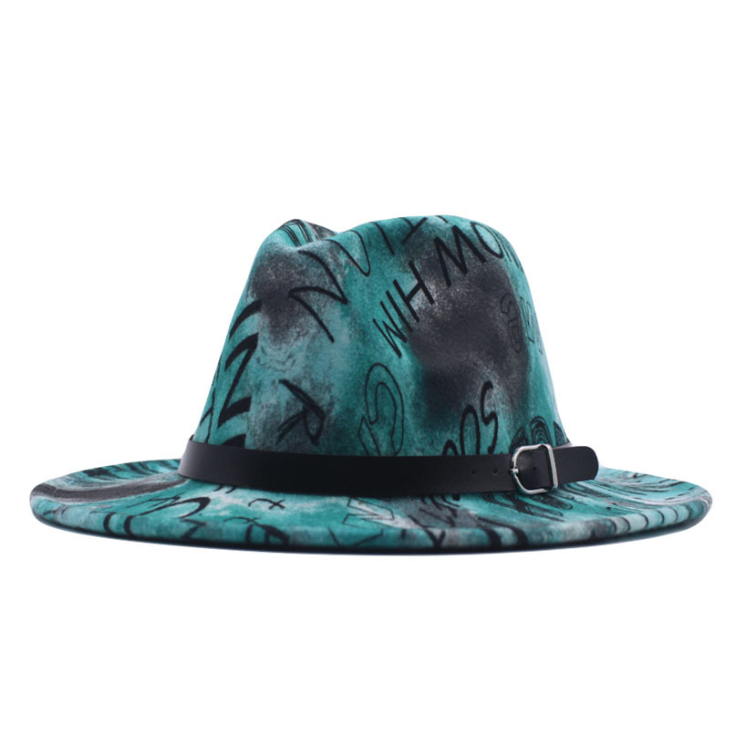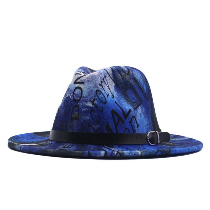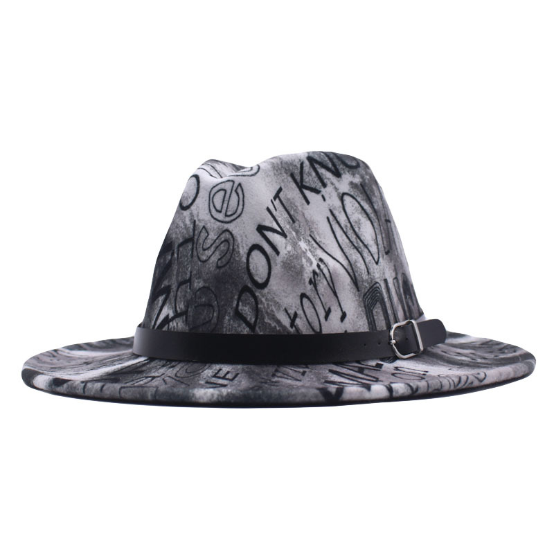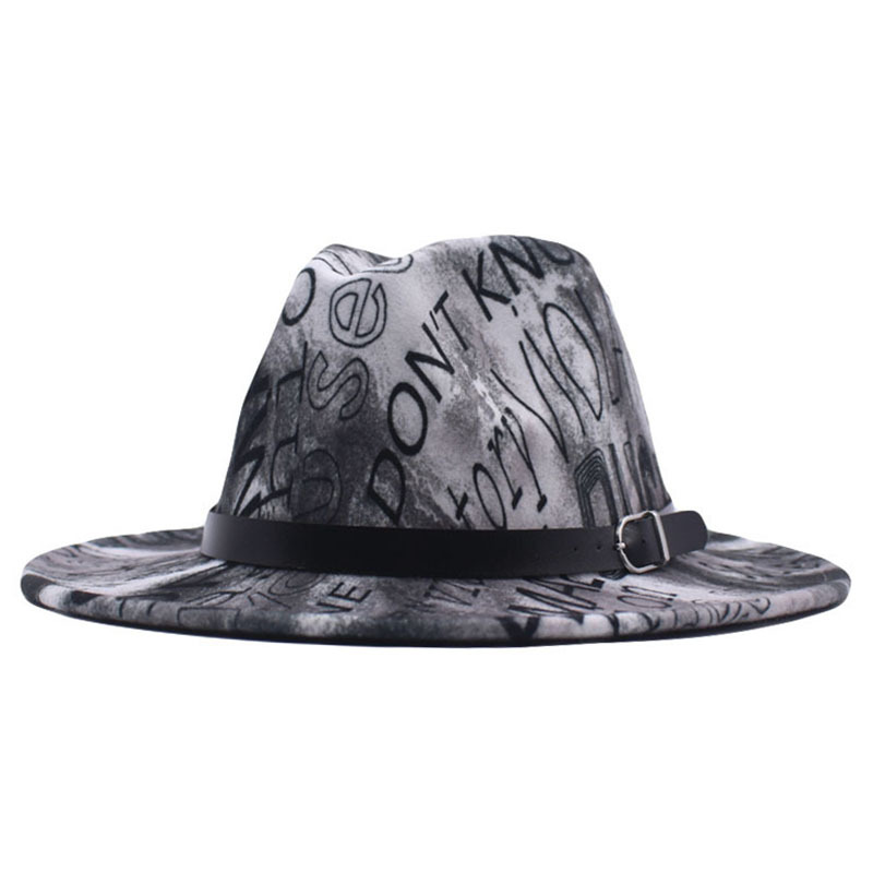 가을과 겨울 남성과 여성의 새로운 편지 디지털 인쇄 큰 챙 모자 유럽과 미국 패션 영국 스타일 울 블랙 벨트 모자