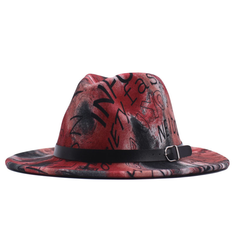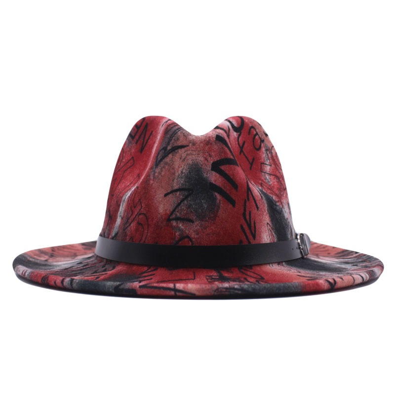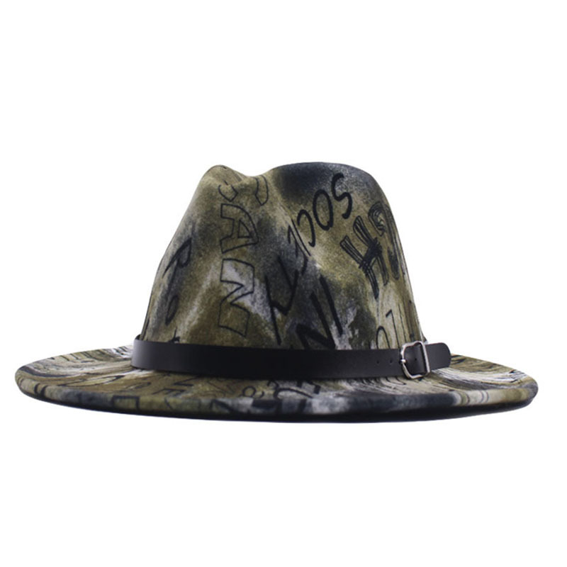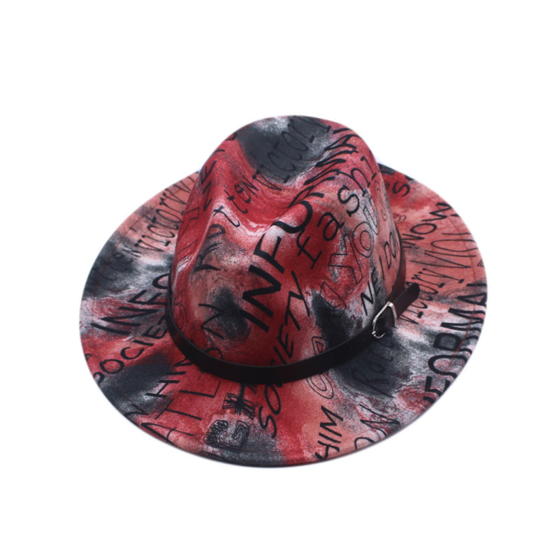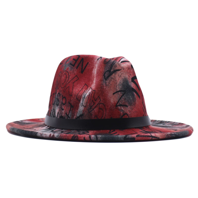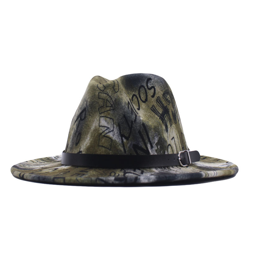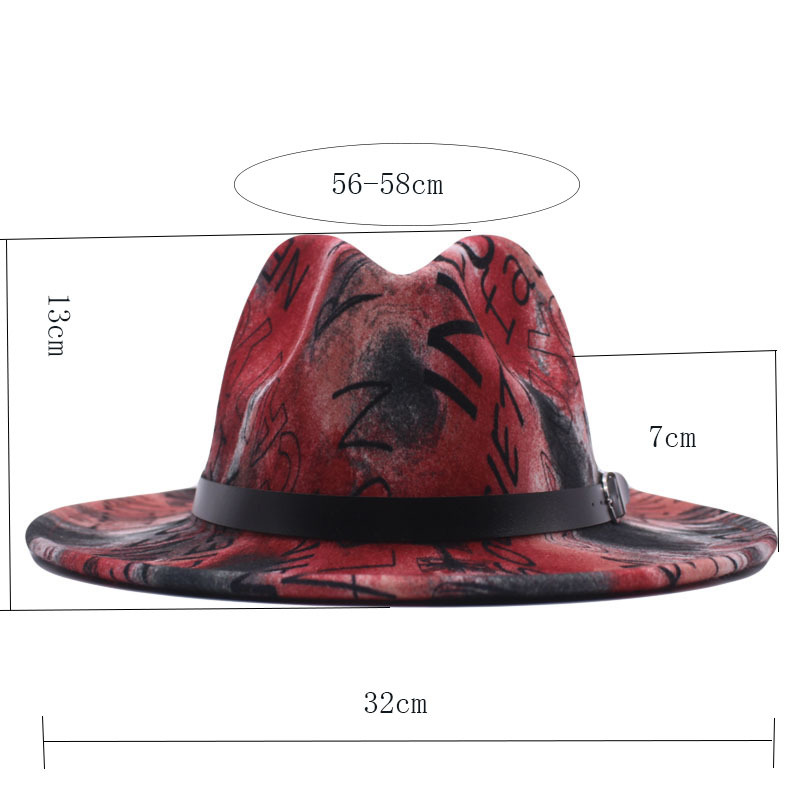 가을과 겨울 남성과 여성의 새로운 편지 디지털 인쇄 큰 챙 모자 유럽과 미국 패션 영국 스타일 울 블랙 벨트 모자