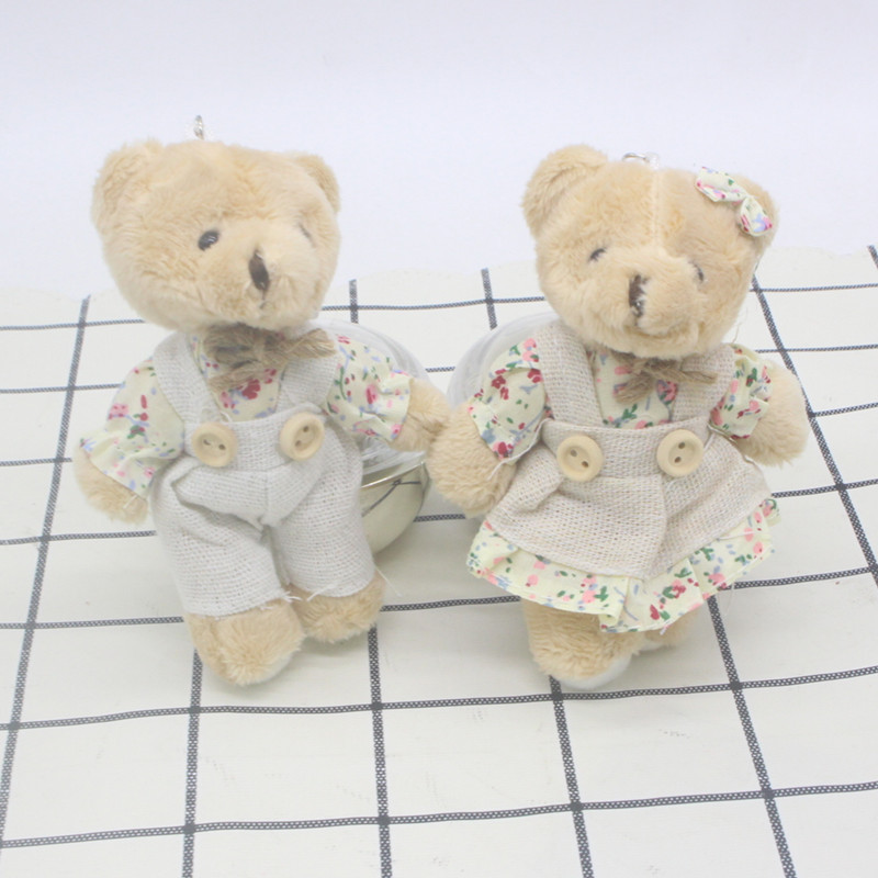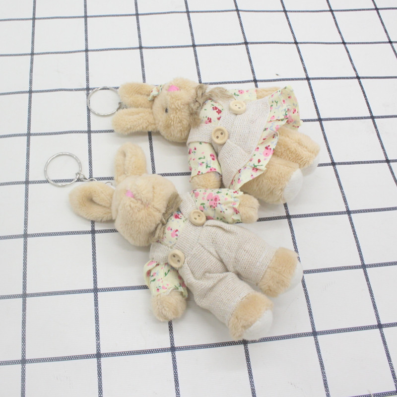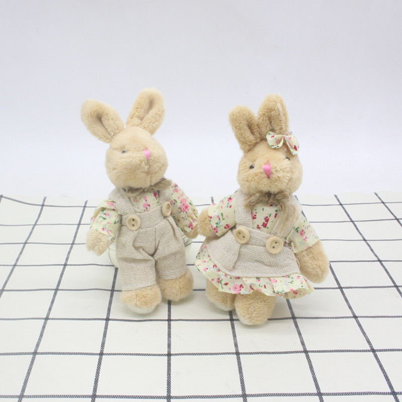 毛绒玩具情侣麻布兔公仔,花布裙装兔子挂件娃娃
