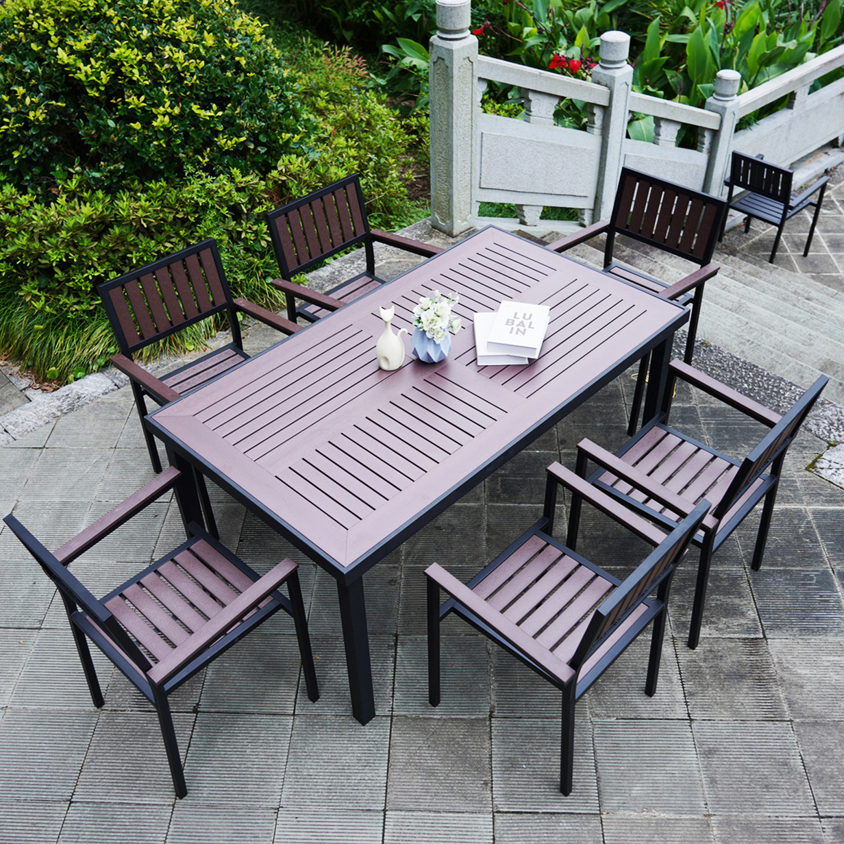 야외 플라스틱 목재 테이블과 의자, 안뜰 방부목 야외 레저 식탁, 정원 야외 발코니 야외 레저 테이블과 의자