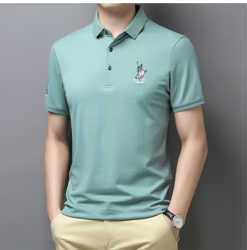 2022 새로운 여름 셔츠 남자의 느슨한 플러스 사이즈 비즈니스 옷깃 남자의 폴로 반팔 셔츠 자수 머리카락의 세대