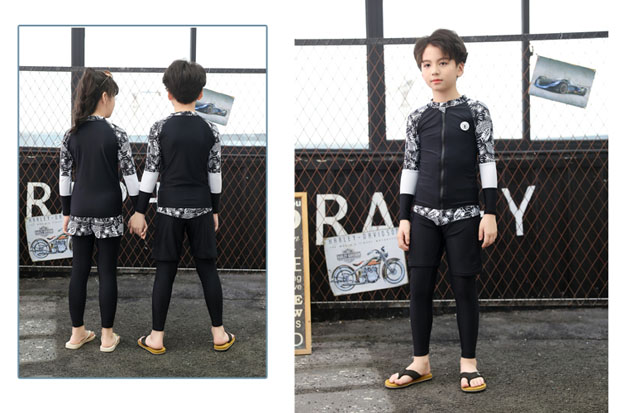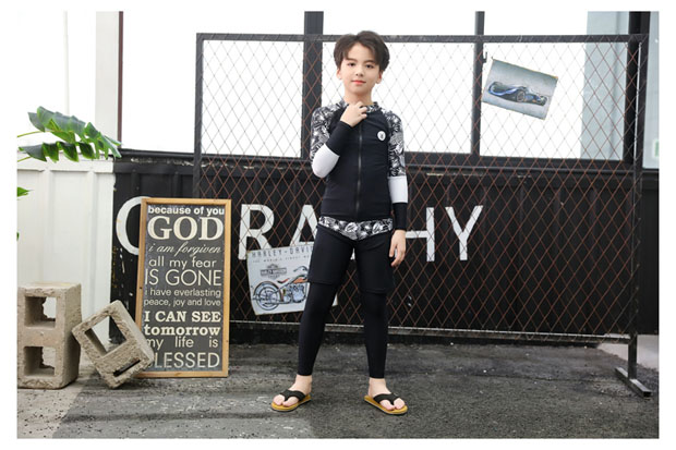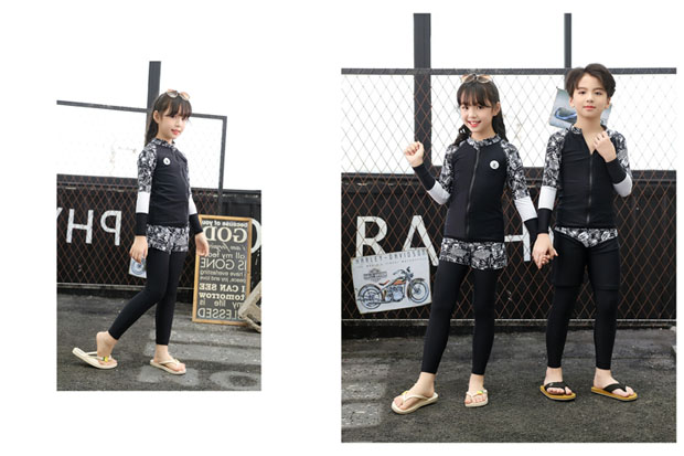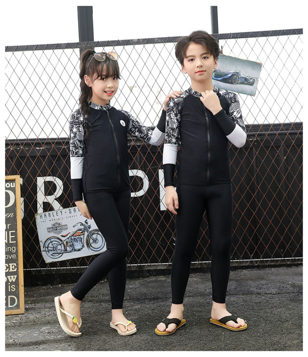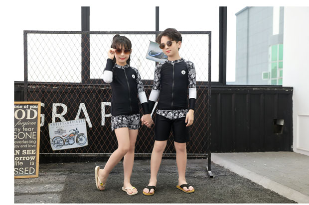 새로운 남성과 여성의 중간 및 큰 어린이의 속건 자외선 차단제 어린이 수영복 방수 어머니의 긴팔 분할 서핑 표류 다이빙 세트스토어 가기