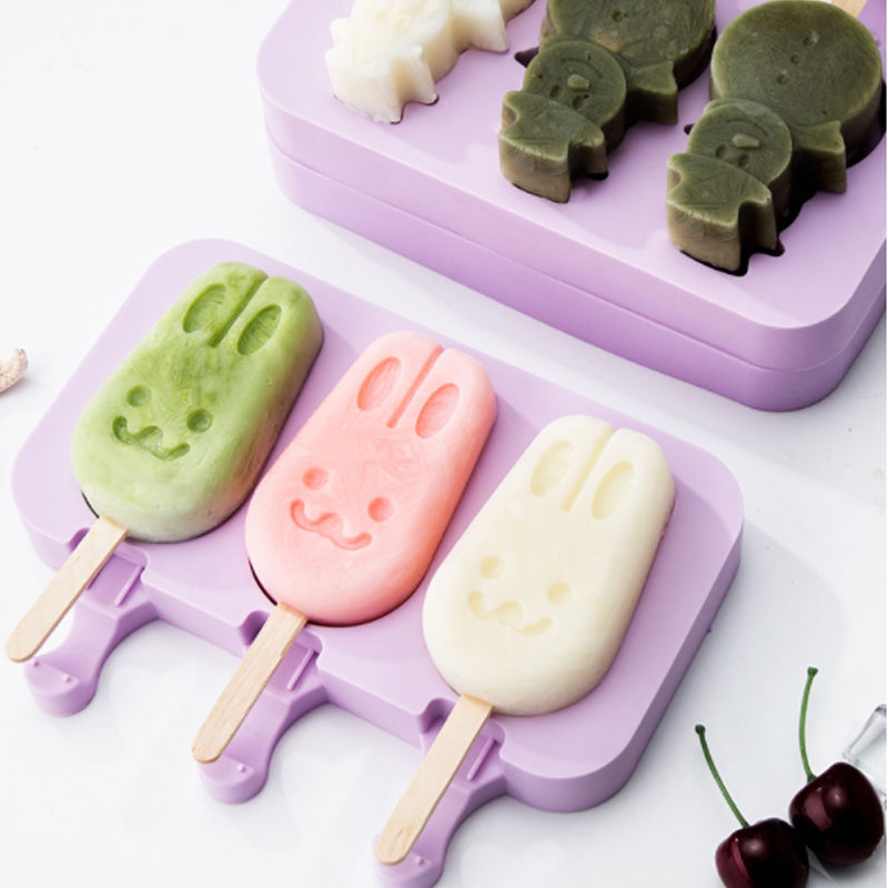 冰格卡通硅胶棒冰模具食品雪糕冷饮模具盒三连冰激淋制冰雪糕模具¥3.6立即购买