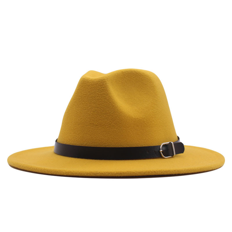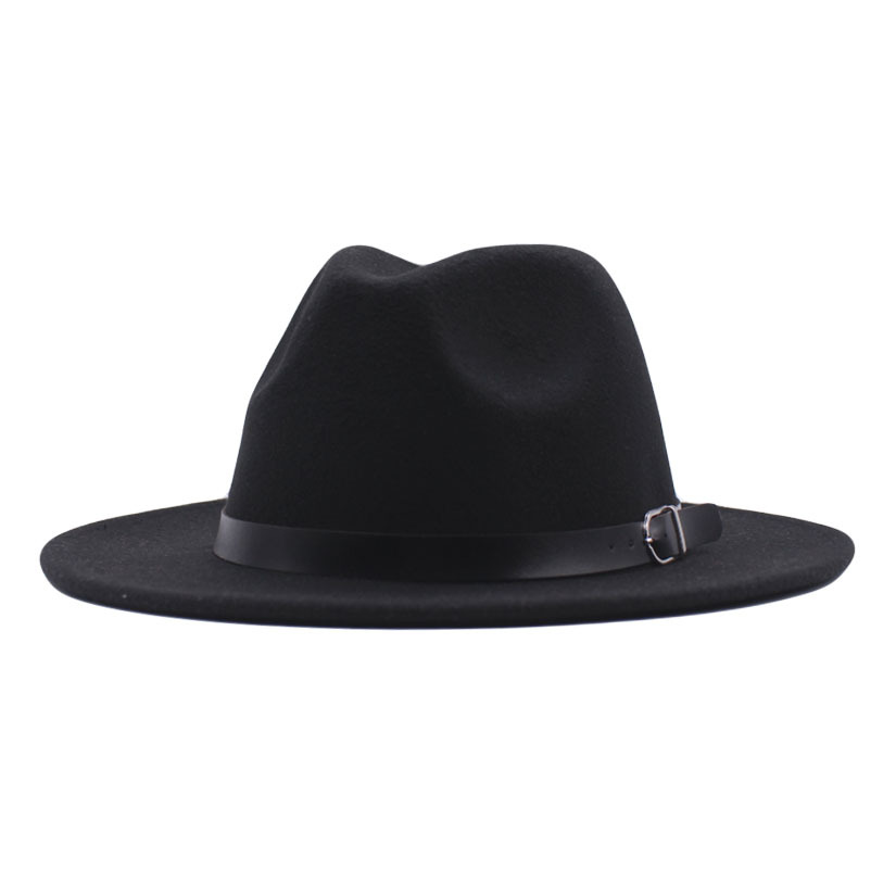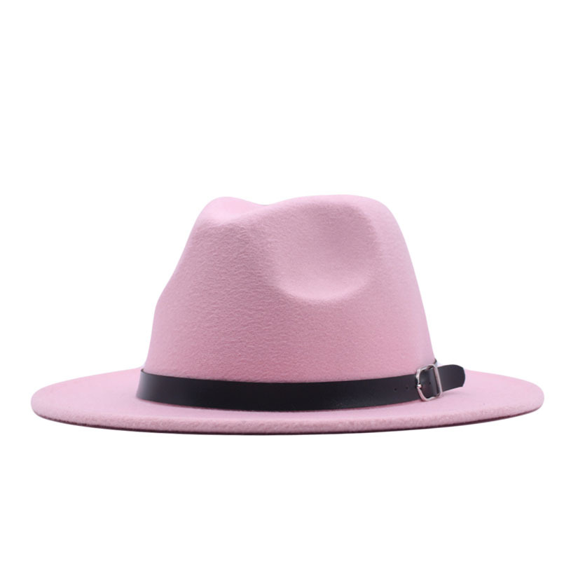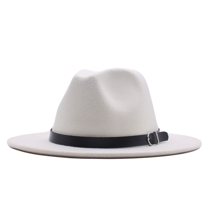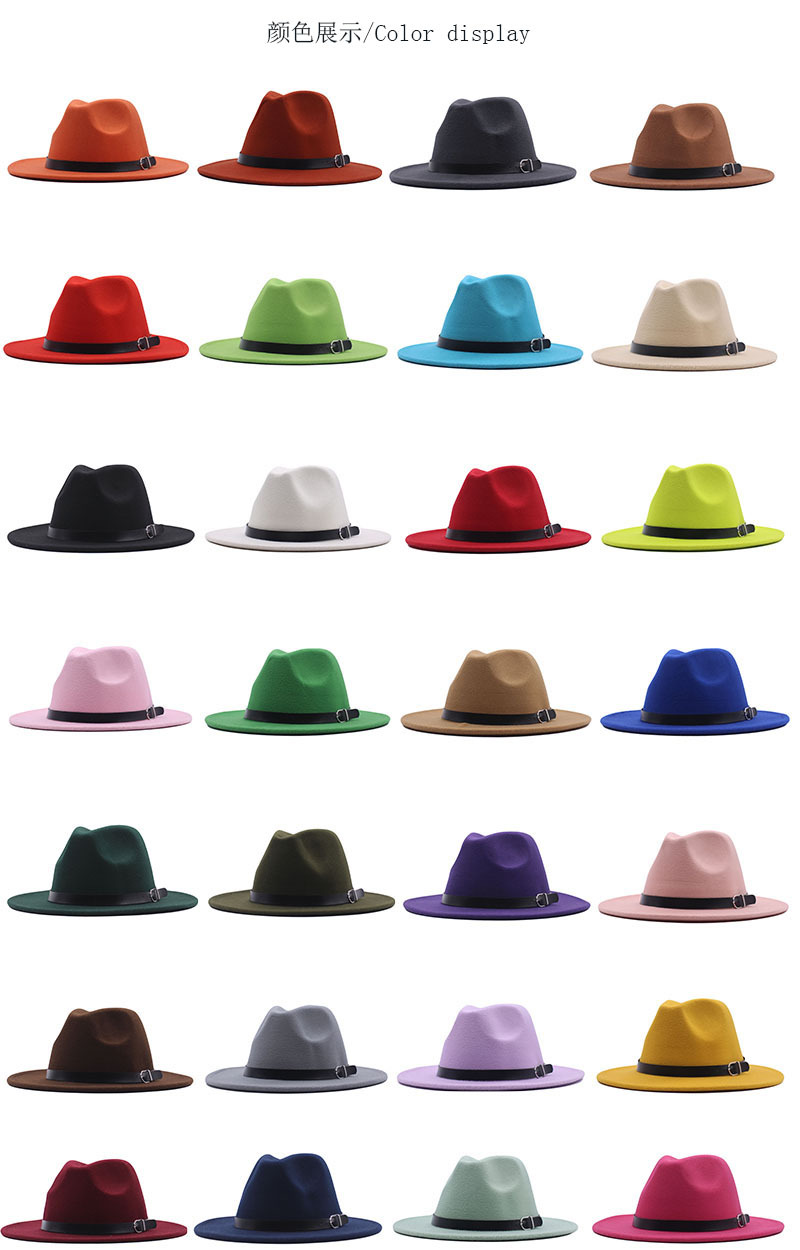 유럽과 미국 스타일 레트로 울 모자 벨트 챙이 모자 여성 가을과 겨울 영국 캐주얼 모든 경기 재즈 모자