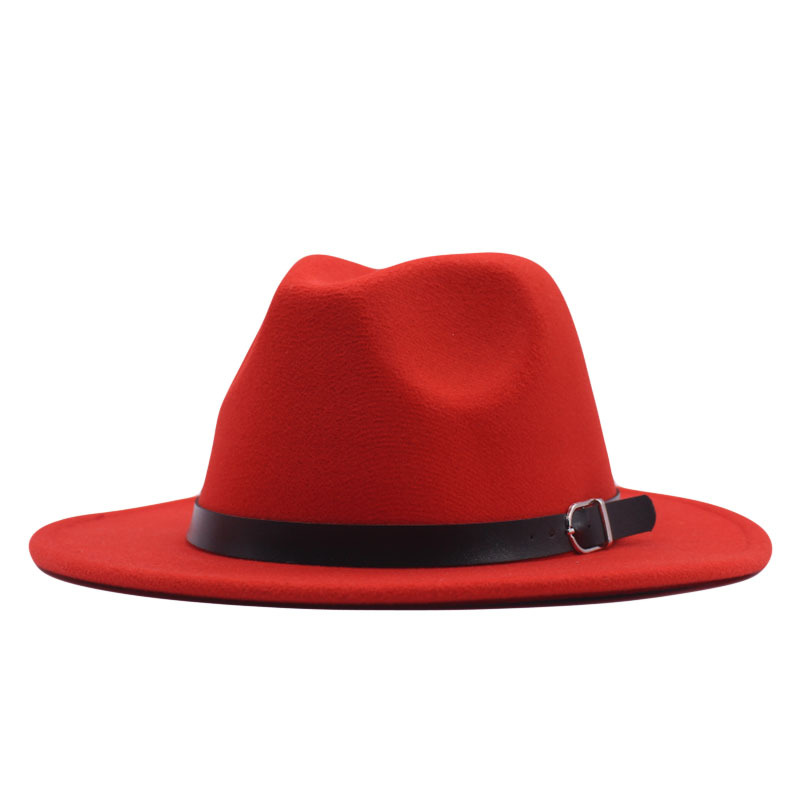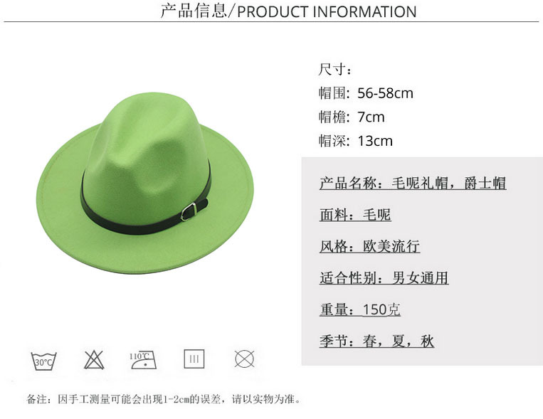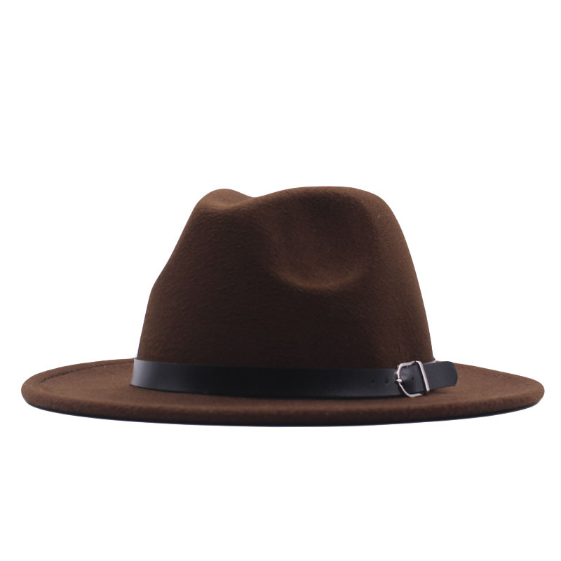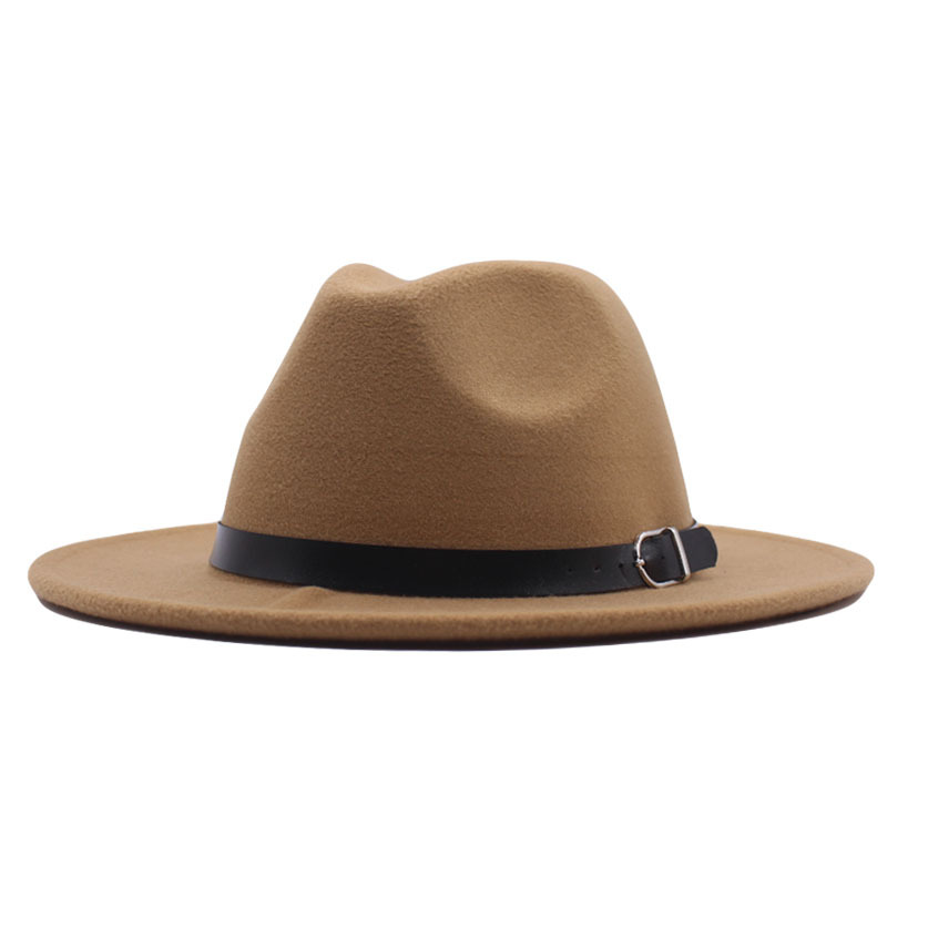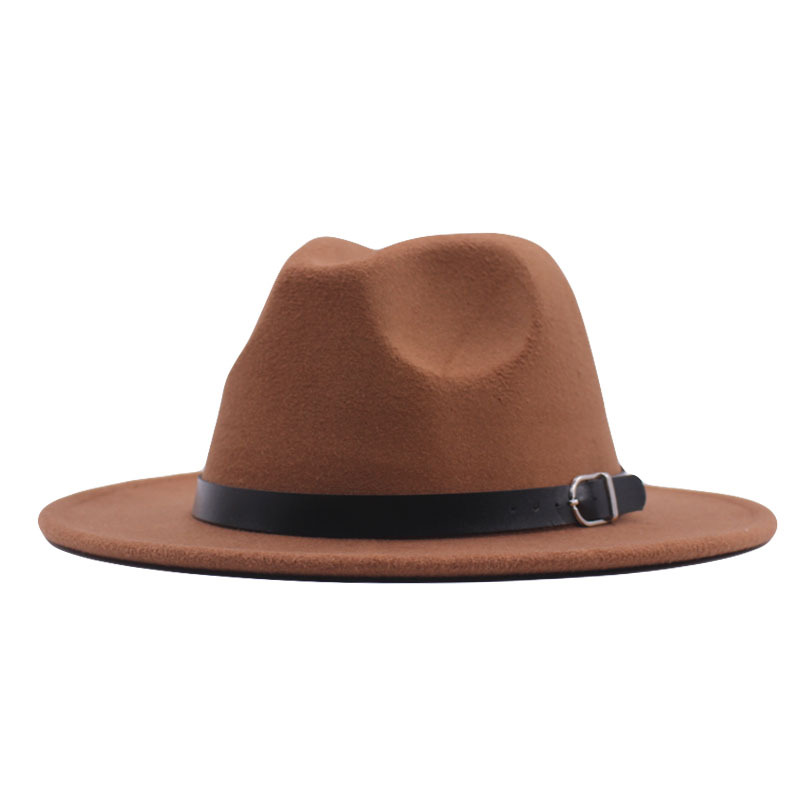 유럽과 미국 스타일 레트로 울 모자 벨트 챙이 모자 여성 가을과 겨울 영국 캐주얼 모든 경기 재즈 모자