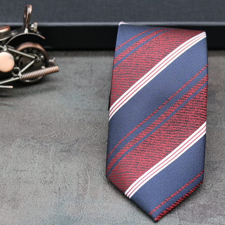 남자의 비즈니스 캐주얼 레드 블루 스트라이프 대비 색상 바느질 신랑 결혼식 손 넥타이 세트 넥타이 유행