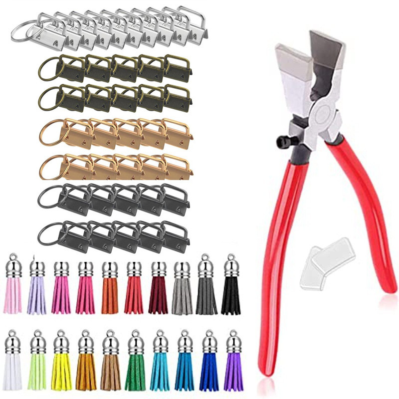 60 PC 테일 클립 4 색 키 체인 하드웨어 금속 세트 교수형 클립 크로스 보더 공급 가죽 끈 술 펜치스토어 가기