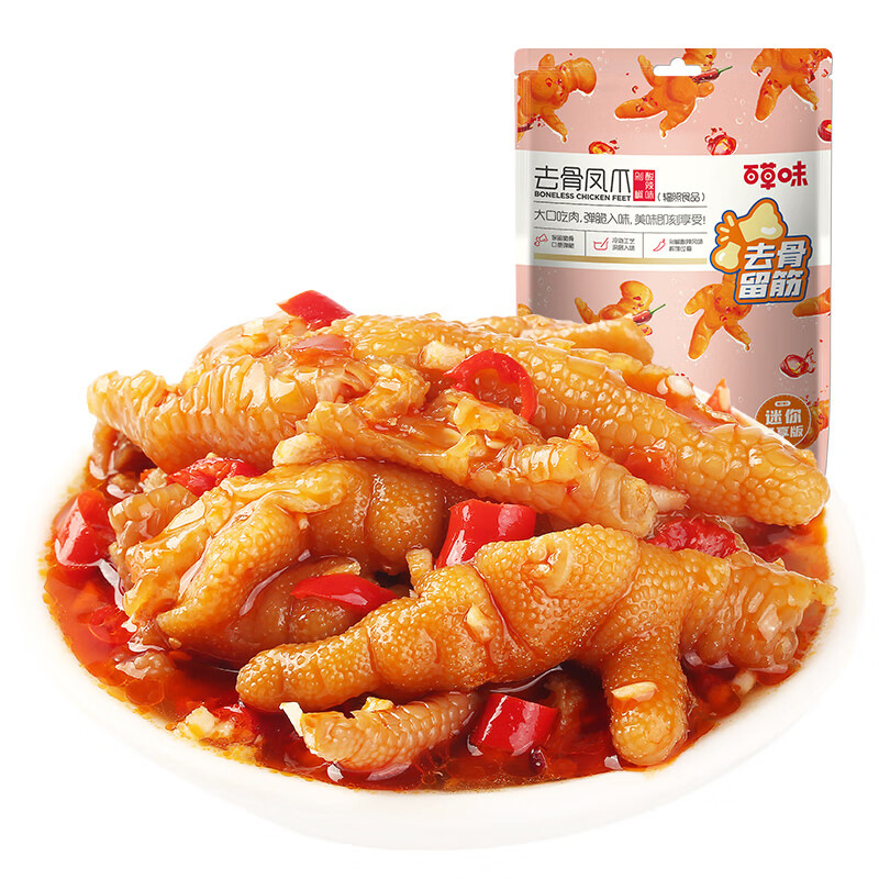 백초위 뼈없는 닭발 75g 더블 레몬맛/절인 고추맛 상자 포장 90개 닭발 스낵 도매스토어 가기