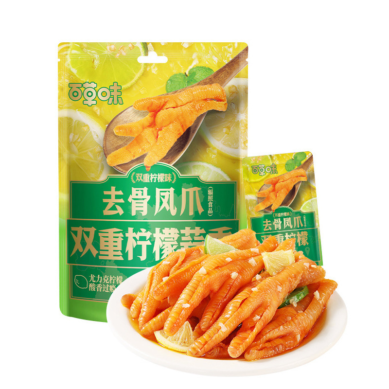 백초위 뼈없는 닭발 75g 더블 레몬맛/절인 고추맛 상자 포장 90개 닭발 스낵 도매