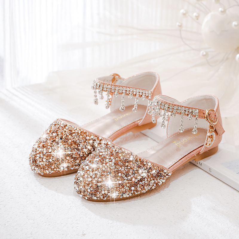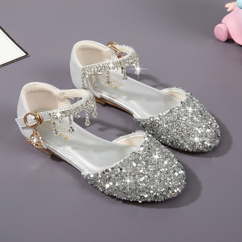 여아 샌들, 플라워 걸 드레스, 어린 소녀 드레스, 크리스탈 슈즈, 부드러운 밑창, 실버 컬러, 어린이 패션쇼 공연, 공주 슈즈, 워터 다이아몬드