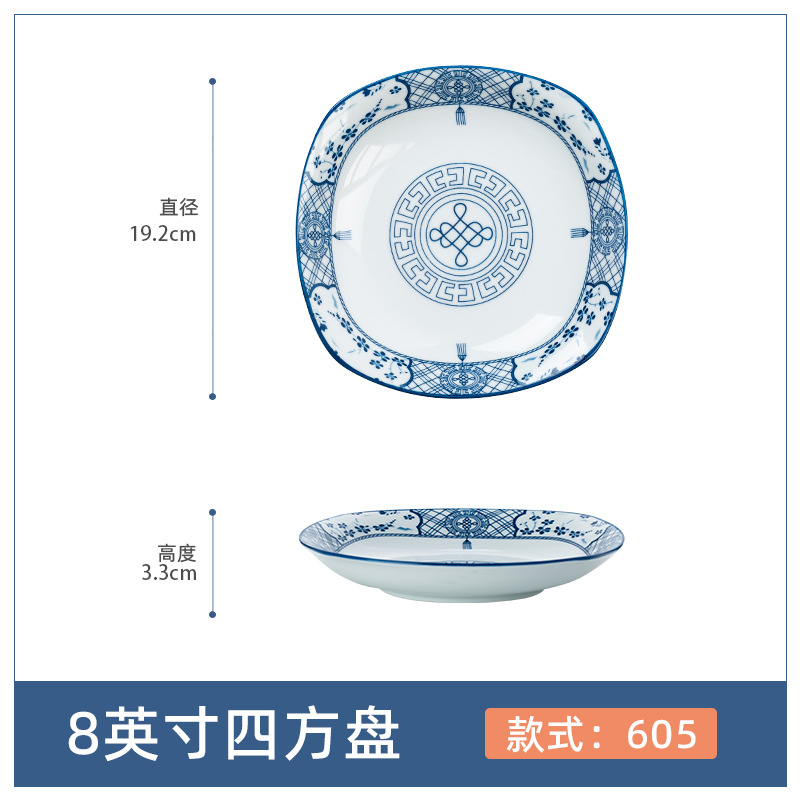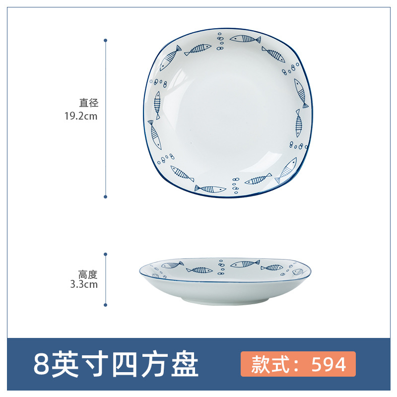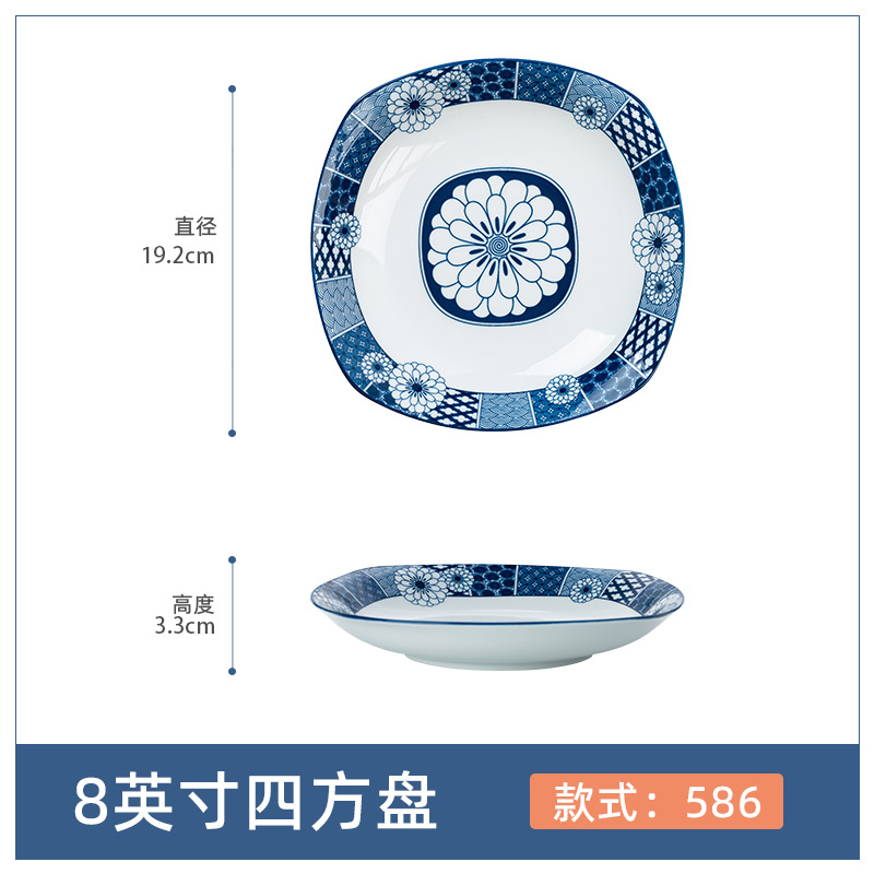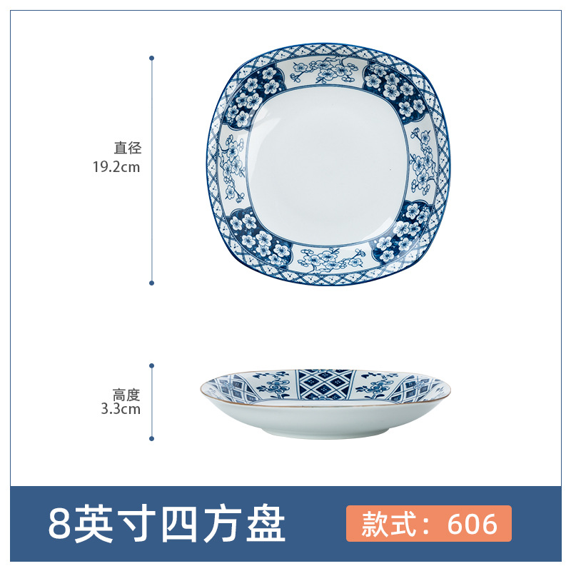 Jingdezhen 세라믹 플레이트 8 인치 사각 플레이트 일본 접시 언더글레이즈 색상 고온 크리에이티브 플레이트 딥 플레이트 수프 플레이트스토어 가기