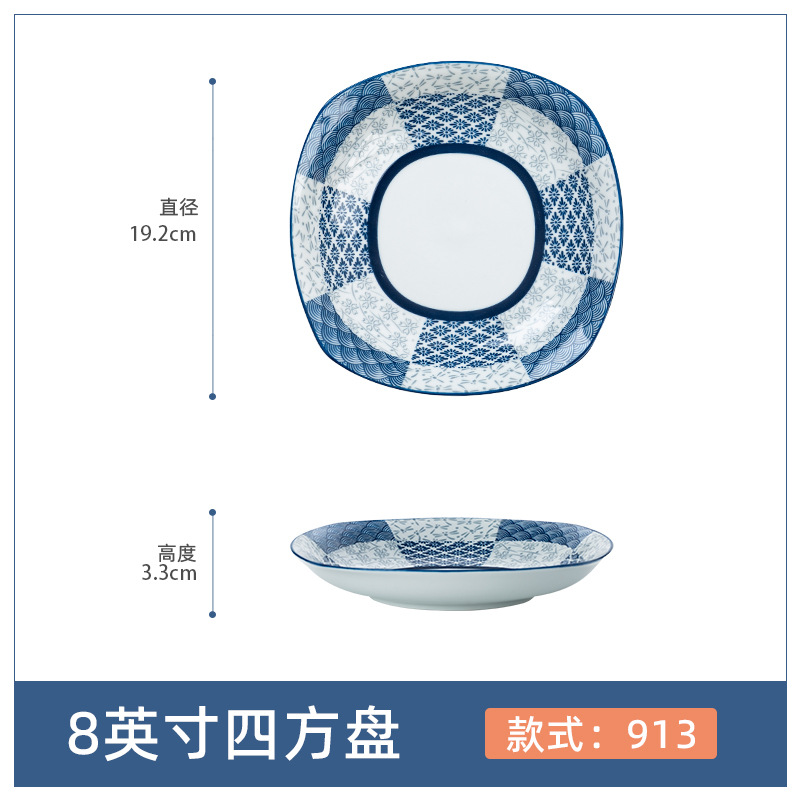 Jingdezhen 세라믹 플레이트 8 인치 사각 플레이트 일본 접시 언더글레이즈 색상 고온 크리에이티브 플레이트 딥 플레이트 수프 플레이트