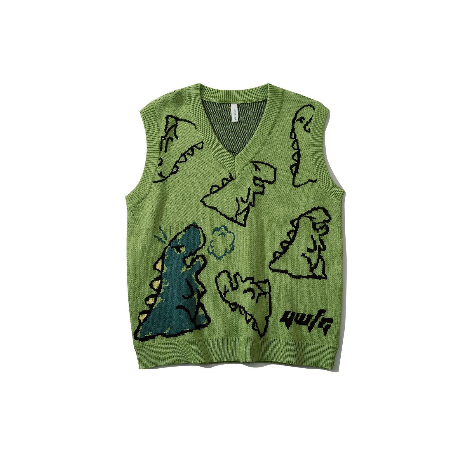YWFG 스웨터 남성용 스웨터 커플 2023 새로운 가을과 겨울 공룡 만화 민소매 조끼