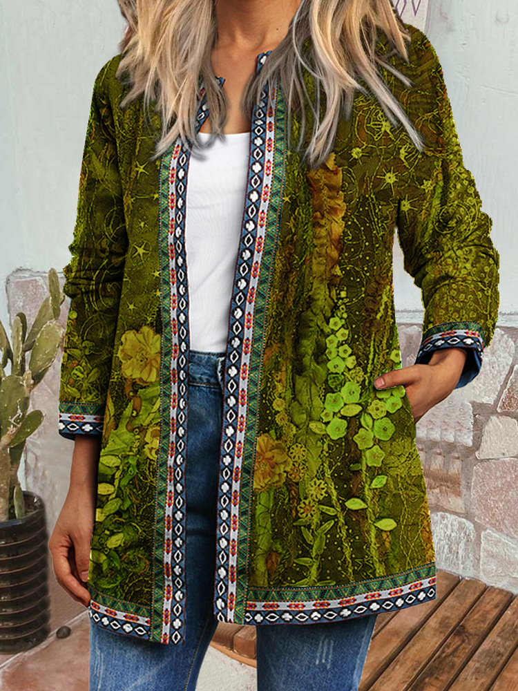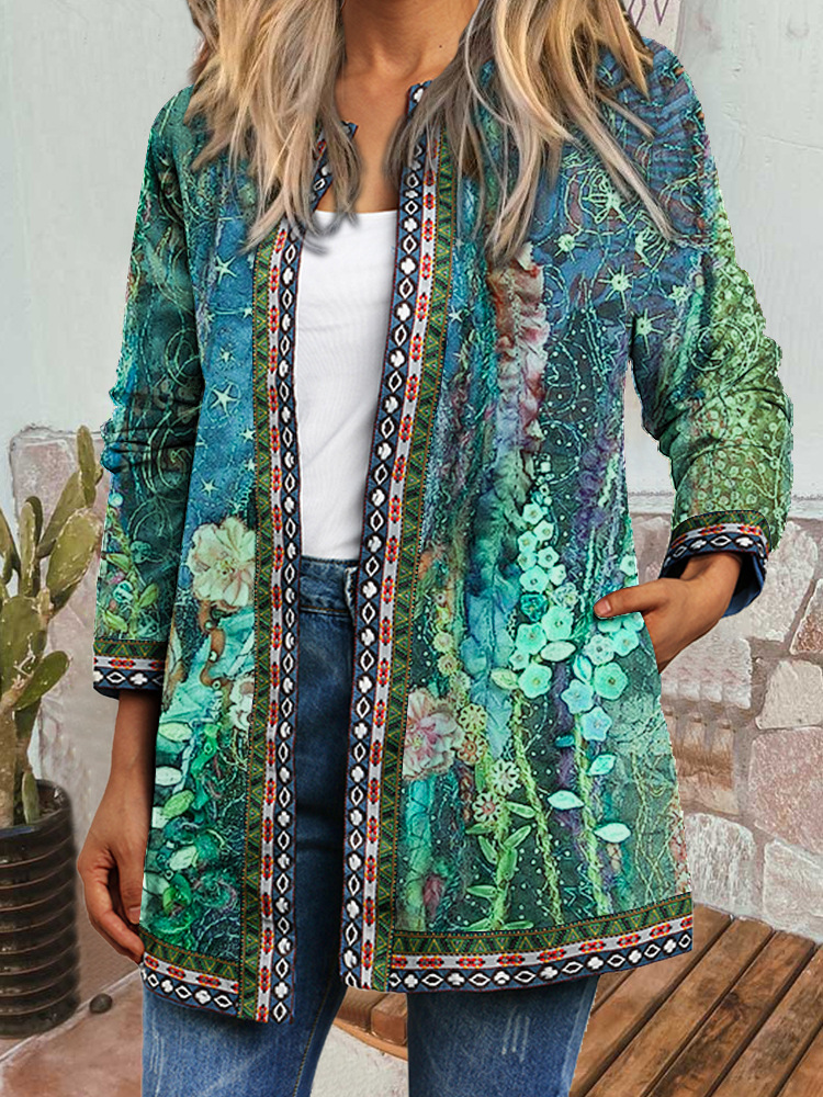 9226 # 아마존 소원 가을/겨울 새로운 복고풍 에스닉 스타일 인쇄 긴 소매 재킷 재킷 카디건 여성복