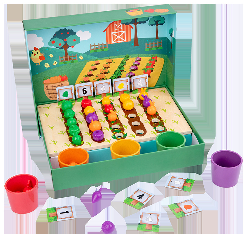 어린이 나무 퍼즐 수학 계발 조기 교구 농장 과일 야채 농장 색 분류 컵 장난감스토어 가기