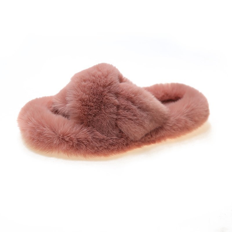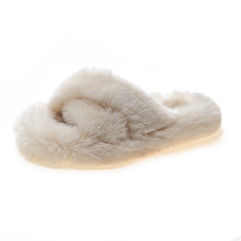 2024 가을 겨울 신상 여성용 털 슬리퍼, 한국 스타일 학생 인기 털 슬리퍼, 여성용 크로스 털 슬리퍼