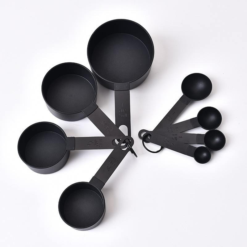 • 블랙 스테인리스 손잡이 계량스푼과 계량컵 8종 세트