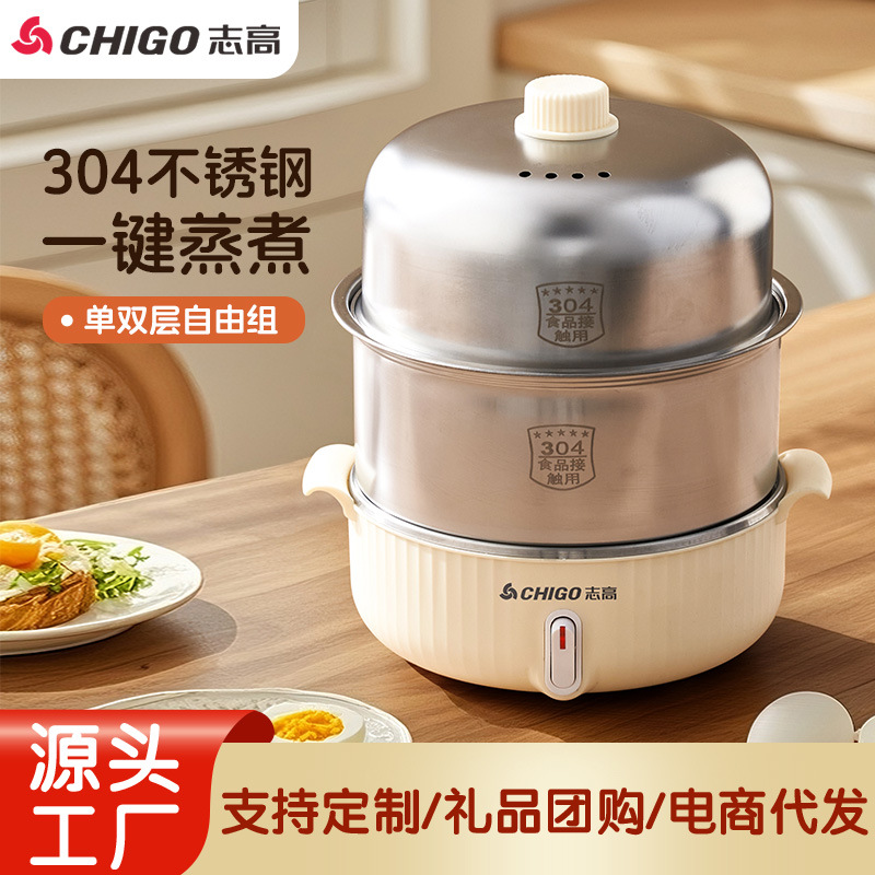 Chigo Timed 계란 보일러 자동 전원 끄기 소형 가정용 미니 찐 계란 아침 식사 계란 커스터드 기계 다기능 도매