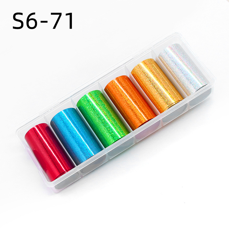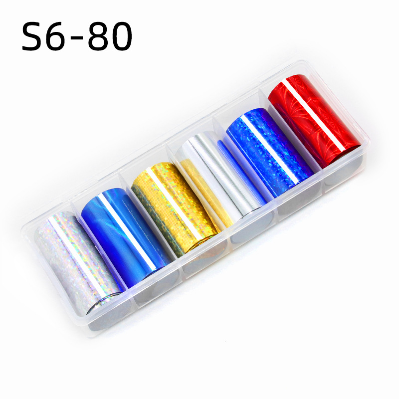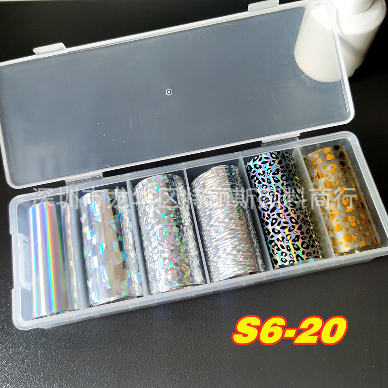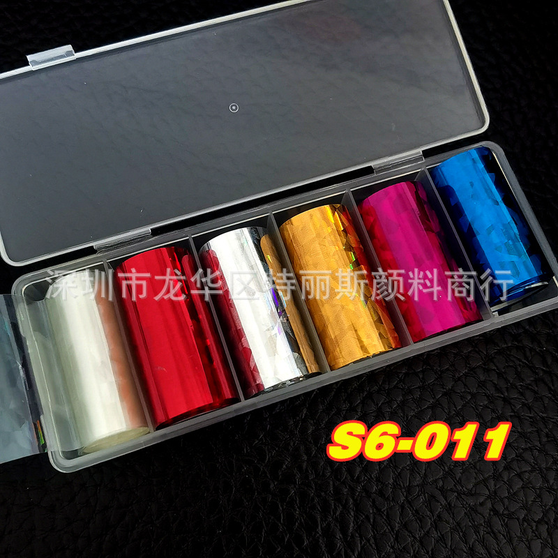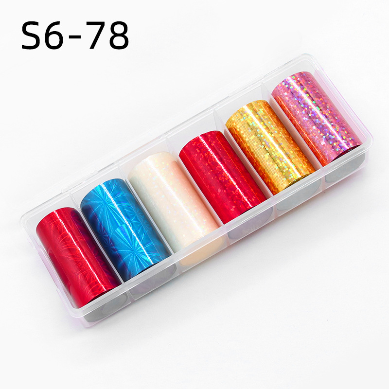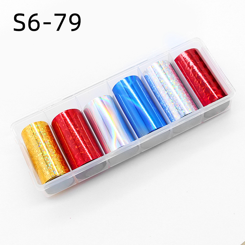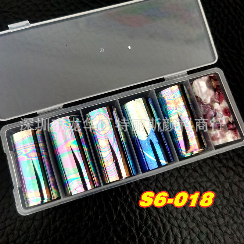 네일 아트 별이 빛나는 하늘 종이 세트 박스 6 그리드 별이 빛나는 하늘 종이 오로라 셀로판 네트 레드 미러 레이저 유리 네일 아트 스티커