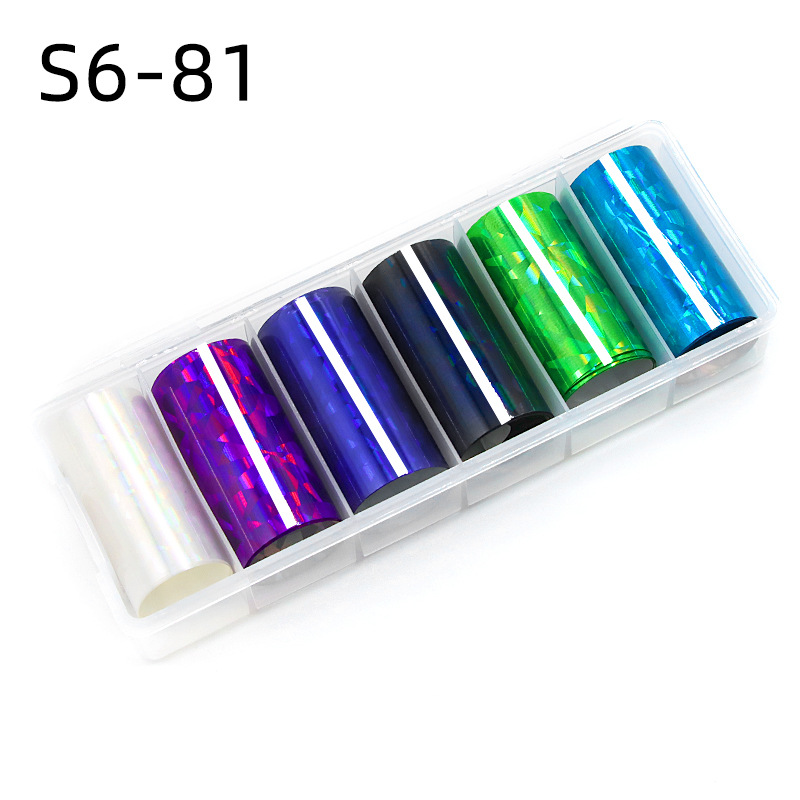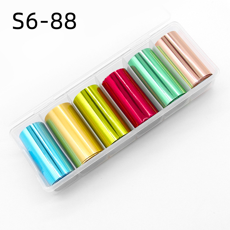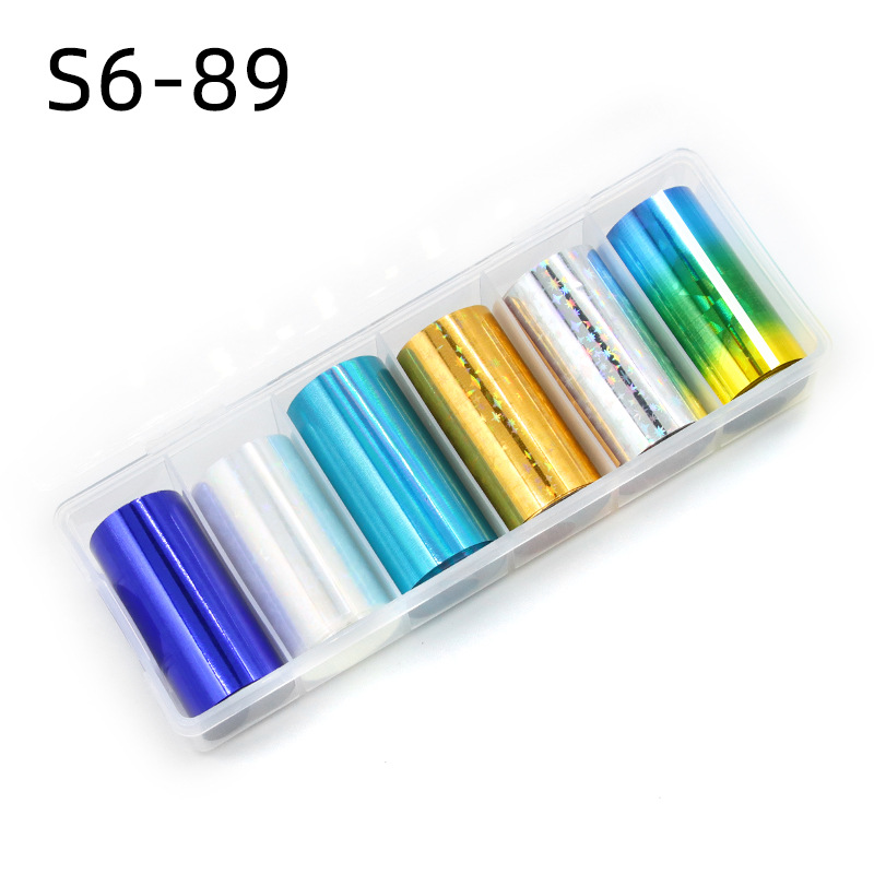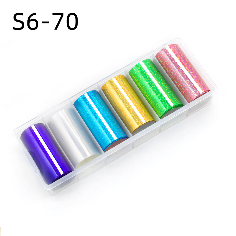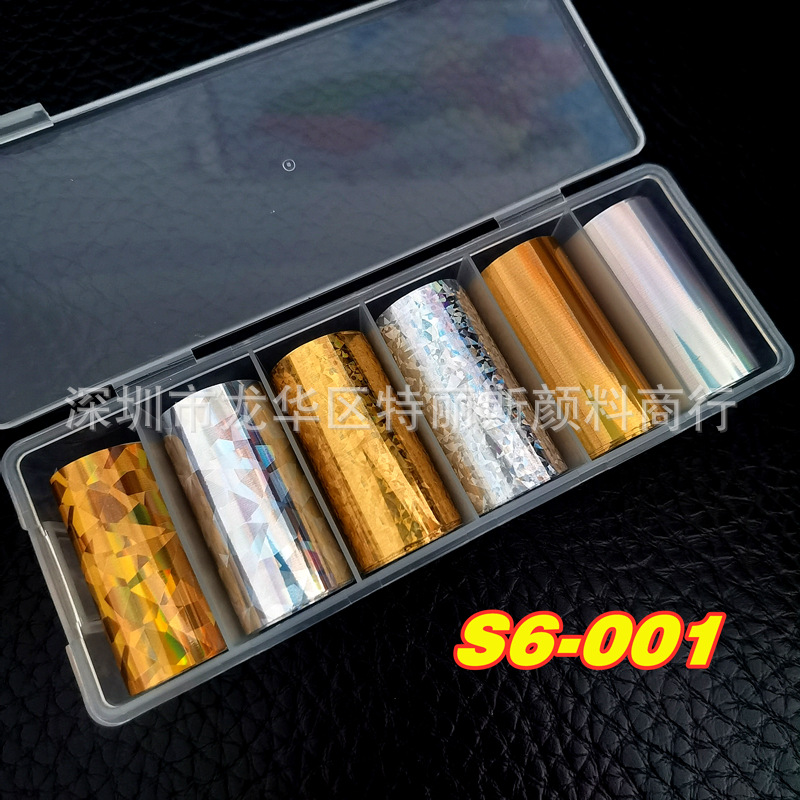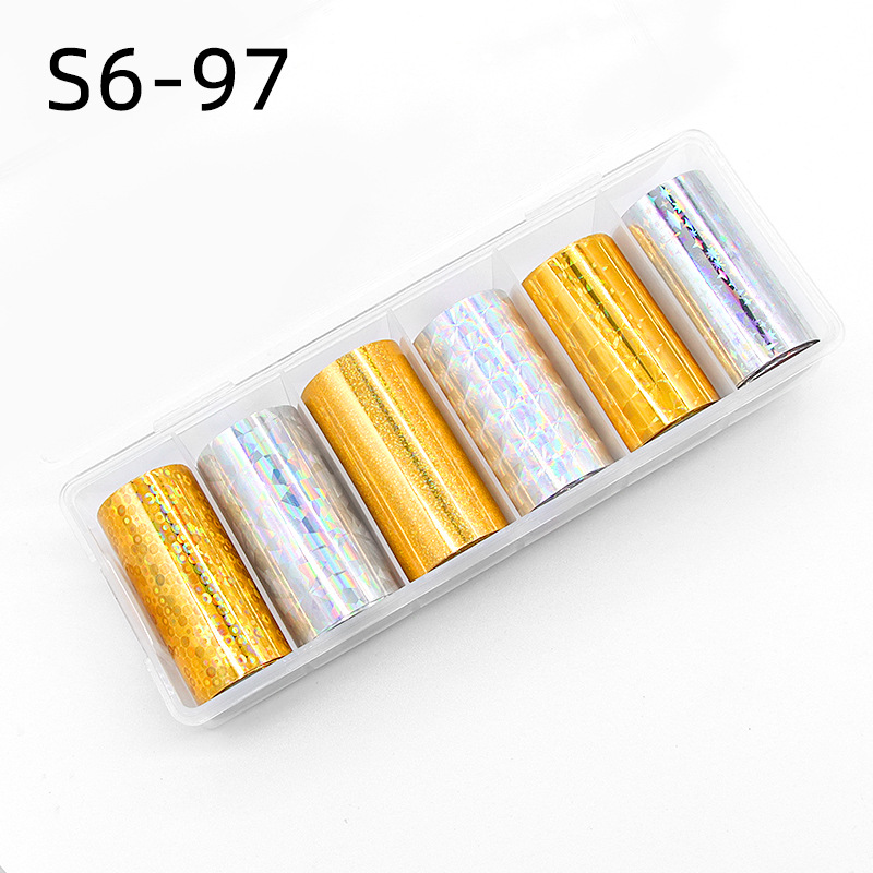 네일 아트 별이 빛나는 하늘 종이 세트 박스 6 그리드 별이 빛나는 하늘 종이 오로라 셀로판 네트 레드 미러 레이저 유리 네일 아트 스티커