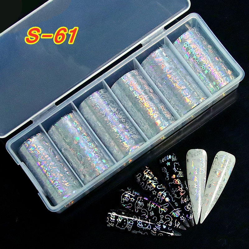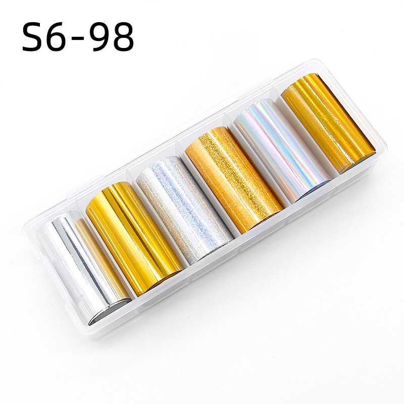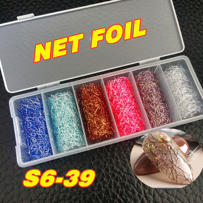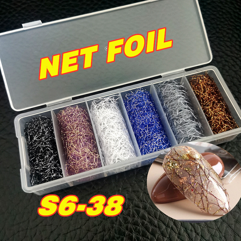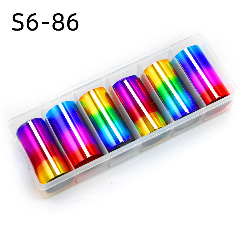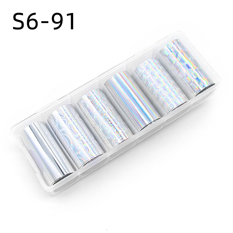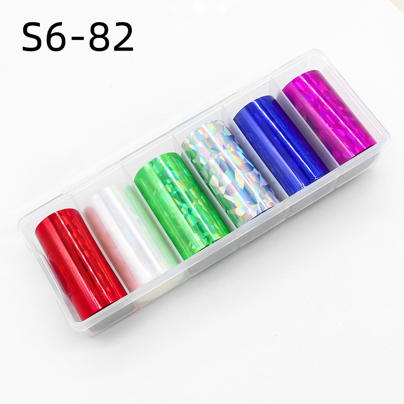 네일 아트 별이 빛나는 하늘 종이 세트 박스 6 그리드 별이 빛나는 하늘 종이 오로라 셀로판 네트 레드 미러 레이저 유리 네일 아트 스티커