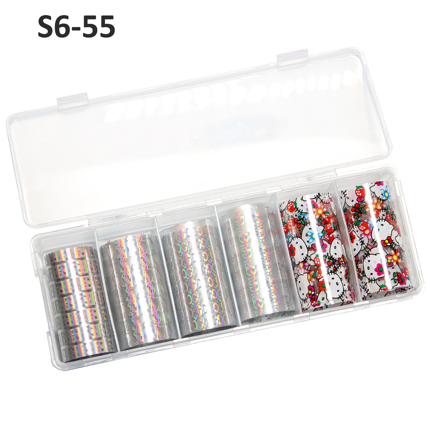 네일 아트 별이 빛나는 하늘 종이 세트 박스 6 그리드 별이 빛나는 하늘 종이 오로라 셀로판 네트 레드 미러 레이저 유리 네일 아트 스티커스토어 가기